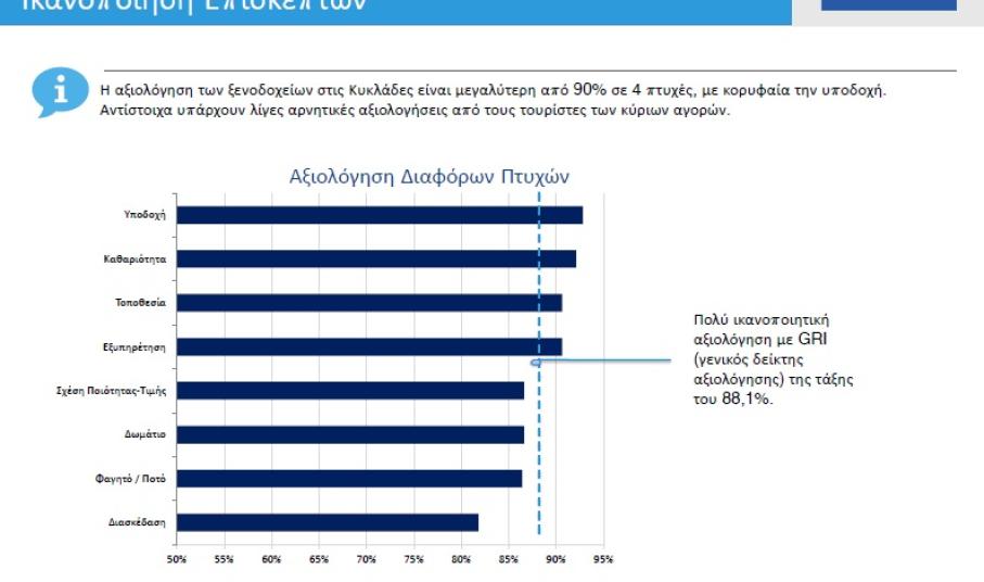 Παράλληλα, αναπτύσσονται σε γραφήματα το ύψος των αφίξεων, οι διανυκτερεύσεις, ανάλογα με την προέλευση των επισκεπτών (εγχώριος – ξένος τουρισμός) και η δεδηλωμένη ικανοποίηση των επισκεπτών από τις τουριστικές υπηρεσίες.