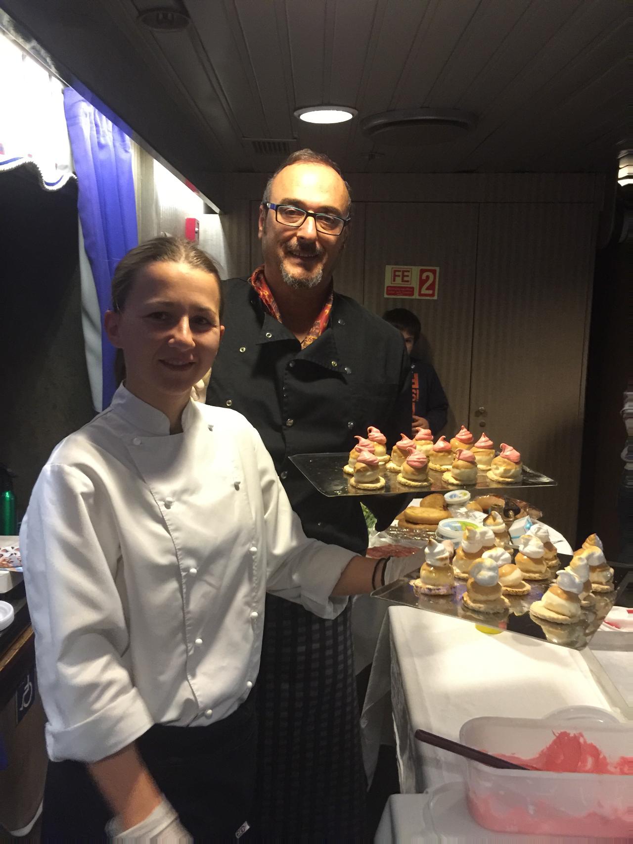Επιπλέον, ετοιμάστηκε και προσφέρθηκε “Baked Alaska”. Το παγωτό έγινε με μυκονιάτικο γιαούρτι του τυροκομείου και προσφέρθηκε φλαμπέ πάνω σε παντεσπάνι.