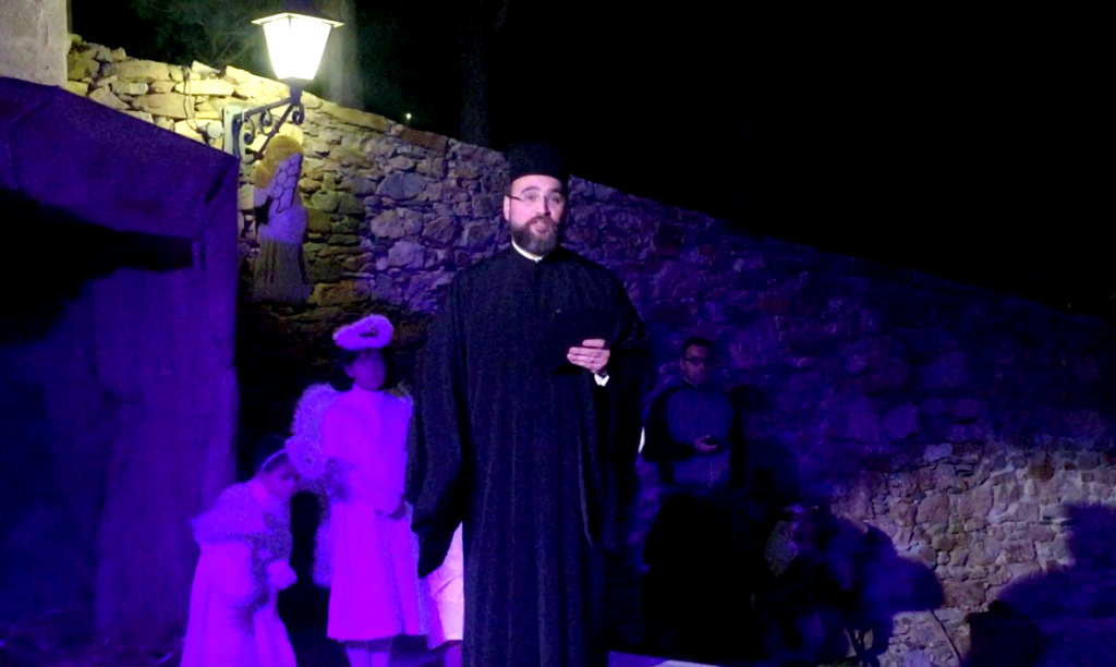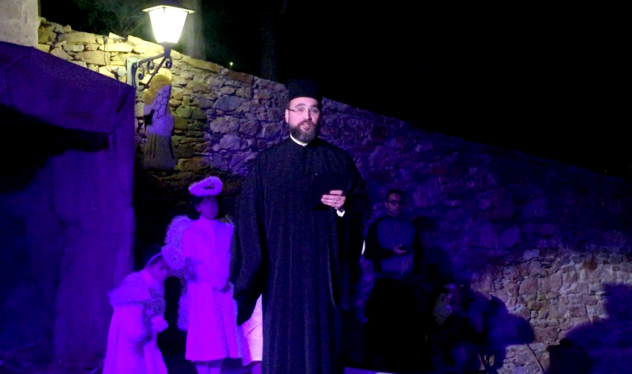 Προλογίζοντας τη γιορτή, με θέμα την «Αναπαράσταση της Γεννήσεως του Χριστού», ο εφημέριος του Ναού της γνωστής σε όλους Παναγίτσας των Χρουσσών, π. Φλαβιανός Αλμπέσκου, μίλησε για το μήνυμα των Χριστουγέννων, αναφέροντας, μεταξύ άλλων, πως «μέσα από τα δρώμενα που τα αγαπημένα μας παιδιά θα παρουσιάσουν απόψε, θα προσπαθήσουν – και σίγουρα θα τα καταφέρουν – να παρουσιάσουν σε όλους μας το αληθινό πνεύμα των Χριστουγέννων».