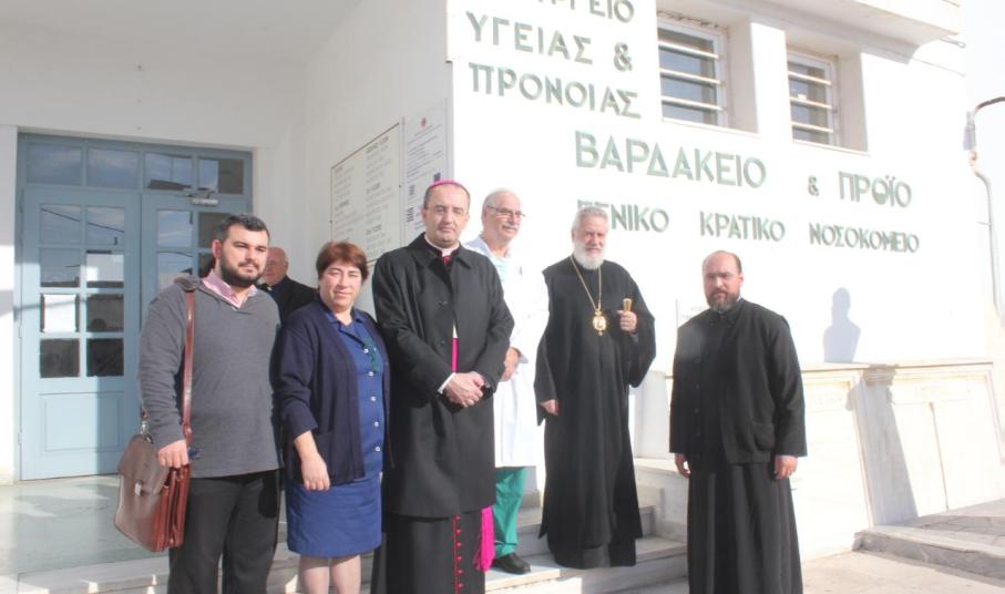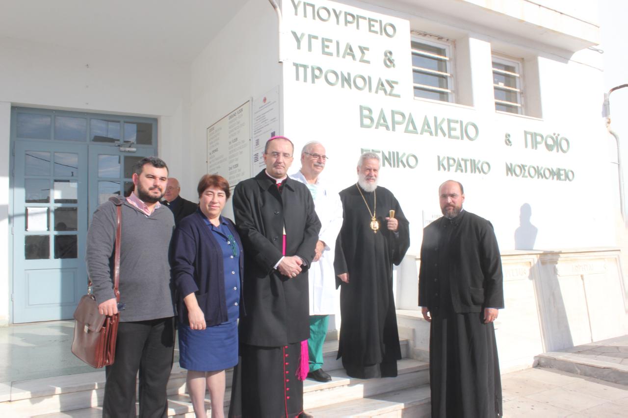 Στο πλαίσιο του καθιερωμένου οδοιπορικού αγάπης στα ευαγή ιδρύματα του νησιού, οι Επίσκοποι των δύο εκκλησιών επισκέφτηκαν χθες τον οίκο ευγηρίας της Καθολικής Εκκλησίας των Αδελφών του Ελέους, το Γενικό Νοσοκομείο Σύρου, το Γηροκομείο του Αγίου Παντελεήμονα και τέλος, το φιλανθρωπικό κατάστημα της Ι. Μητρόπολης Σύρου, του Αγίου Ιωάννη στα Τάλαντα.