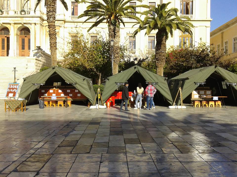 Σημειώνεται ότι σε συνεργασία με το Τάγμα Εθνοφυλακής Ερμούπολης στήθηκαν χθες ειδικές σκηνές στην Πλατεία Μιαούλη, όπου οι κάτοικοι του νησιού έχουν τη δυνατότητα να καταθέσουν μέχρι και απόψε το βράδυ ό,τι τους περισσεύει στο δικό τους σπίτι και μπορεί να δώσει χαρά σε οικογένειες που έχουν ανάγκη τη βοήθειά μας.