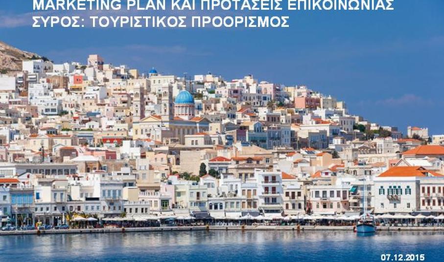 9.12.2015: Σε μία κεκλεισμένων των θυρών συνάντηση, πραγματοποιήθηκε η παρουσίαση του Marketing Plan για την τουριστική προβολή της Σύρου, το οποίο αφορά σε προτάσεις επί των απαιτούμενων προωθητικών κινήσεων στην τουριστική αγορά, που αποτελούν συνέχεια της παρουσίασης που είχε γίνει και στην προηγούμενη Δημοτική Αρχή.