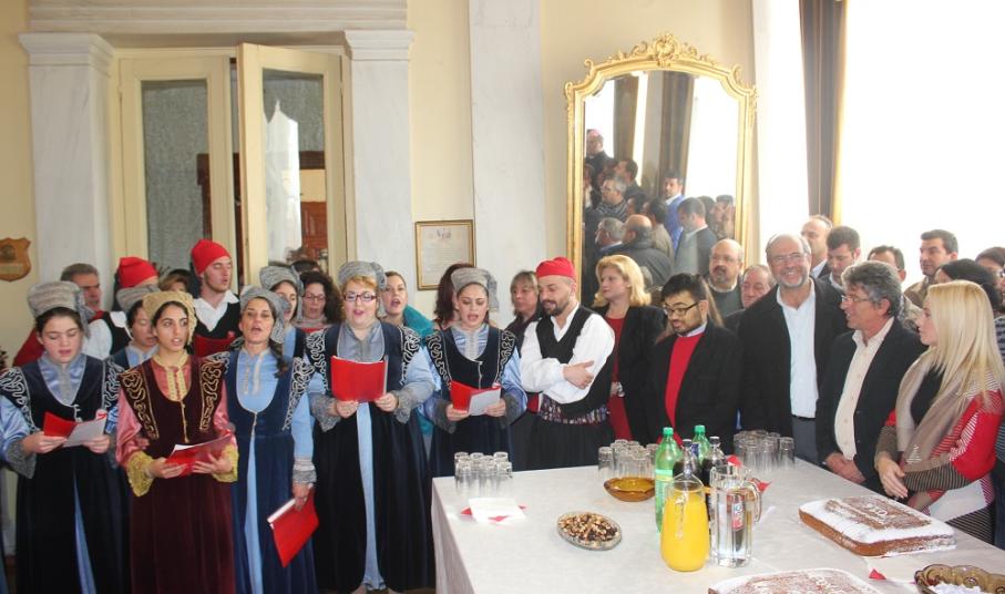 Των ευχών και των μηνυμάτων της προέδρου του δημοτικού συμβουλίου, Μαρίας Καζαντζάκη, του μέλους του ΔΣ του Σωματείου Εργαζομένων του Δήμου Σύρου – Ερμούπολης, Γιάννη Αλεξανδρή, καθώς επίσης του μέλους της Κίνησης Πολιτών Σύρου, Κομνηνού Στρογγύλη και του προέδρου της ομάδας βόλεϊ του Φοίνικα, Αντώνη Ρούσσου ακολούθησε η παρουσίαση των παραδοσιακών καλάντων από μέλη του Λυκείου Ελληνίδων Σύρου.