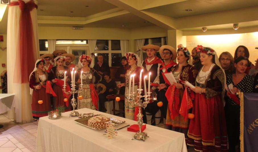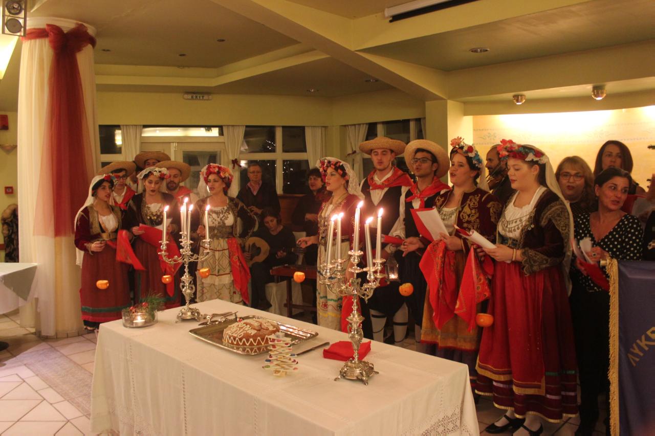 Η εκδήλωση ξεκίνησε με τα κάλαντα των Φώτων από τα μέλη του Λ.Ε.Σ, τα οποία συνόδευσαν οι μουσικοί της παραδοσιακής ορχήστρας του, αποτελούμενης από τους Γιάννη Λουδάρο, Αθανασία Μπόλια, Νίκο Απέργη, Απόστολο Μάρη, Γεωργία Λίτσα και Κατερίνα Βαρδούση.