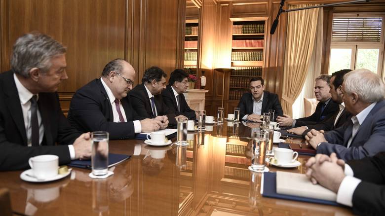 Μετά τις επαφές της κυβέρνησης με τα κόμματα της αντιπολίτευσης, ακολούθησε η συνάντηση του πρωθυπουργού με τους εκπροσώπους των επαγγελματικών φορέων Θεόδωρο Φέσσα του ΣΕΒ, Γεώργιο Καββαθά της ΓΣΕΒΕΕ, Ανδρέα Ανδρεάδη του ΣΕΤΕ και Βασίλη Κορκίδη της ΕΣΕΕ, με τον Αλέξη Τσίπρα να δηλώνει πως πρόκειται για σημαντικές αποφάσεις, επισημαίνοντας ότι «έχουμε κοινωνική ευθύνη να διασφαλίσουμε τη βιωσιμότητα του ασφαλιστικού συστήματος και το χρωστάμε στις επόμενες γενιές».