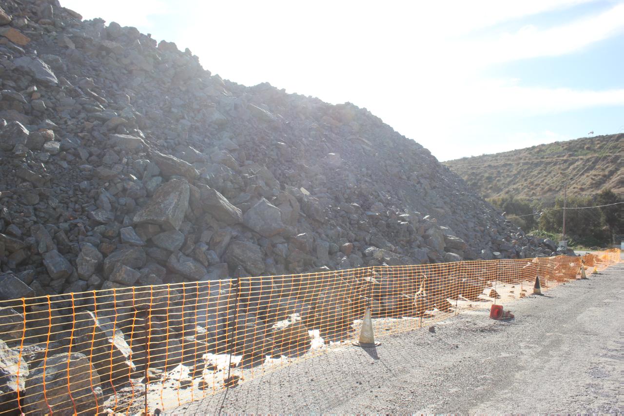 Η μη δυνατότητα απόθεσης των μπάζων στον ΧΥΤΑ του νησιού που θα προκαλούσε σοβαρά ζητήματα στο χρόνο ζωής του κυττάρου, καθώς επίσης και η αδυναμία μεταφοράς τους τελικά στο ανενεργό λατομείο “Δρυμπέτα” για την αποκατάστασή του (θέση “Βούλιας”), εξαιτίας του υψηλού κόστους της μελέτης, την οποία και αδυνατεί οικονομικά να στηρίξει ο ανάδοχος του έργου, έχουν οδηγήσει το σημαντικό έργο σε στασιμότητα.