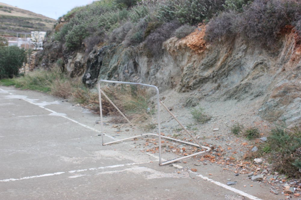 Ειδικότερα, πρόκειται για ένα ανοικτό τμήμα οικοπέδου, το οποίο επισκέπτονται αρκετά από τα παιδιά της γειτονιάς, τα οποία αναπτύσσουν ποικίλες δραστηριότητες καθημερινά και κυρίως τη θερινή περίοδο. Παρόλα αυτά, η εγκατάλειψή του είναι εμφανής καθώς απουσιάζει ειδική περίφραξη σε όλο το μήκος του αν και ο χώρος “συνορεύει” με την οδό Παναχράντου, το δάπεδο είναι ακατάλληλο για χώρο ψυχαγωγίας ή άθλησης και μάλιστα σε τμήματά του έχουν φυτρώσει αγριόχορτα, ενώ, οι δύο μπασκέτες φέρουν σημαντικές φθορές εκτός από τα σημάδια σκουριάς που έχουν “απλωθεί” στις επιφάνειες των στύλων τους. Από τον χώρο απουσιάζει και ο στοιχειώδης φωτισμός ενώ η παρουσία δύο μικρών τερμάτων εντός του εν λόγω γηπέδου, έρχεται να επιβεβαιώσει την ανάγκη εξωραϊσμού του εν λόγω χώρου, αφού τα παιδιά της γειτονιάς επιλέγουν να αξιοποιούν τον ελεύθερο χρόνο τους στο συγκεκριμένο σημείο.