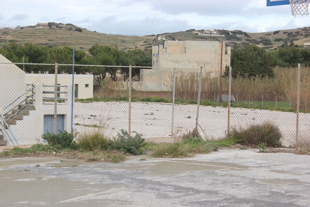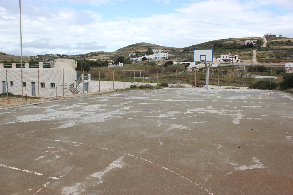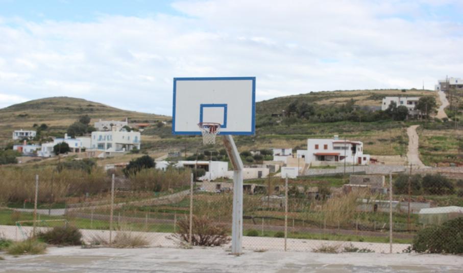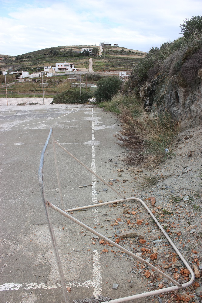 Η ύπαρξη δύο μπασκετών και τίποτα περισσότερο αποτελεί τον μόνο εξοπλισμό που παραπέμπει... σε γήπεδο καλαθοσφαίρισης, ανοικτός χώρος, πλησίον του Ιερού Ναού Αμιάντου Συλλήψεως της Θεοτόκου στη Βάρη.