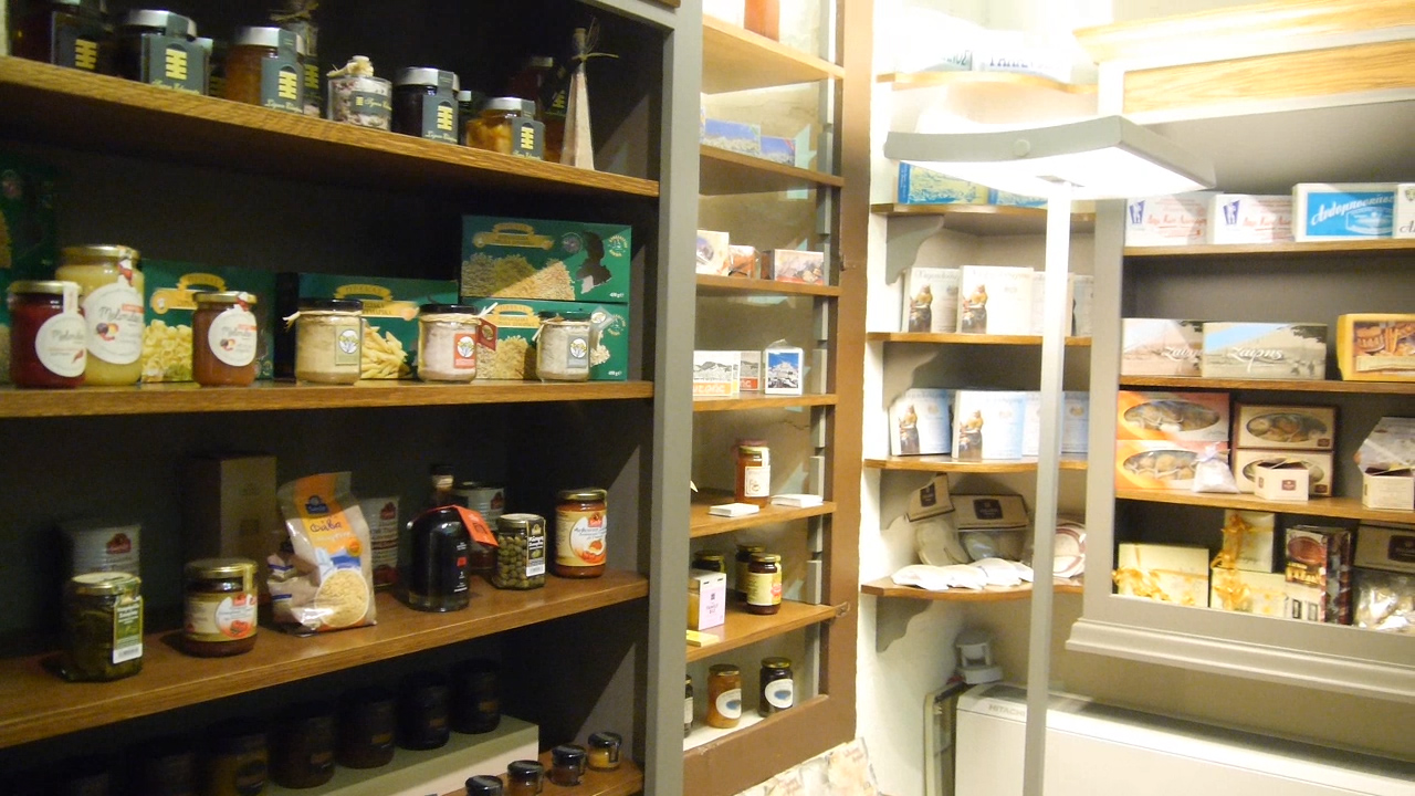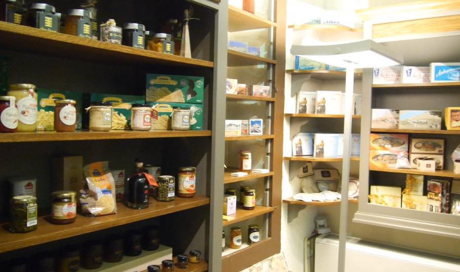 Σε γειτνιάζουσα αίθουσα, τα βλέμματα μονοπωλεί η παλαιά κουζίνα του αρχοντικού, που διαμορφώθηκε κατάλληλα, προκειμένου να φιλοξενήσει και να προβάλει σε φυσικό χώρο την Κυκλαδίτικη παραγωγή του κάθε τόπου στο νομό.