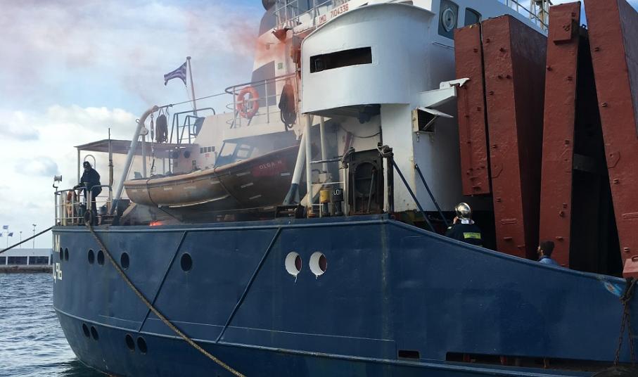 Το σενάριο της άσκησης περιελάμβανε απεγκλωβισμό ατόμου από αμπάρι εμπορικού πλοίου ύστερα από πυρκαγιά, το οποίο ήταν αγκυροβολημένο εντός του λιμένα.