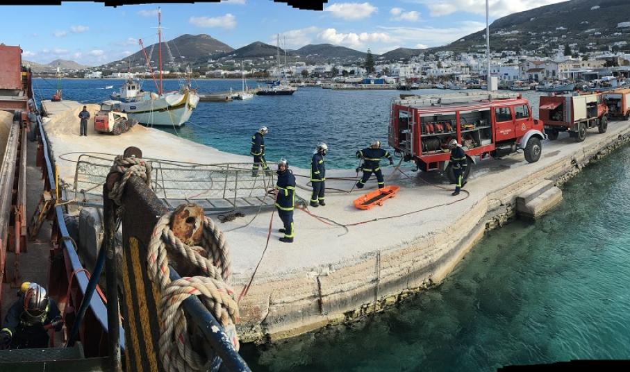 Με απόλυτη επιτυχία πραγματοποιήθηκε εχθές το πρωί άσκηση ετοιμότητας του Πυροσβεστικού προσωπικού στο λιμάνι της Πάρου.