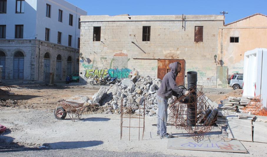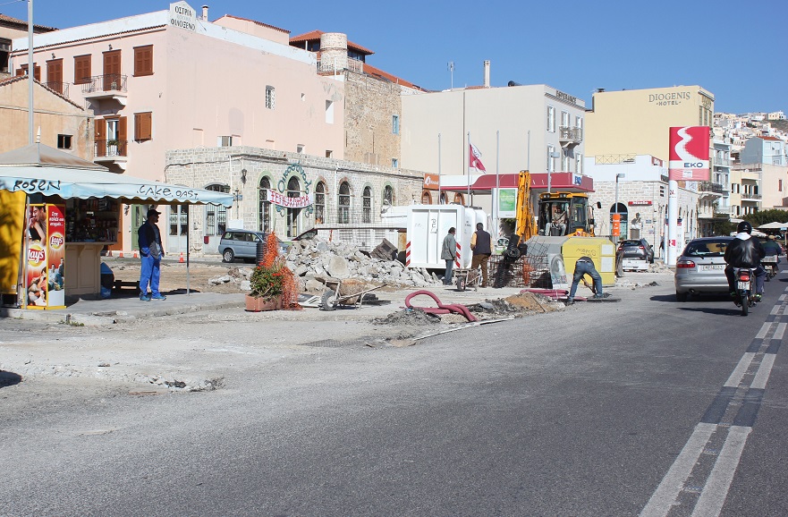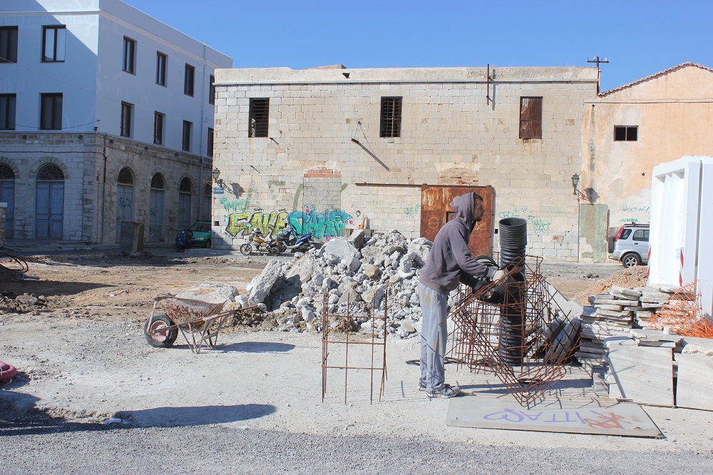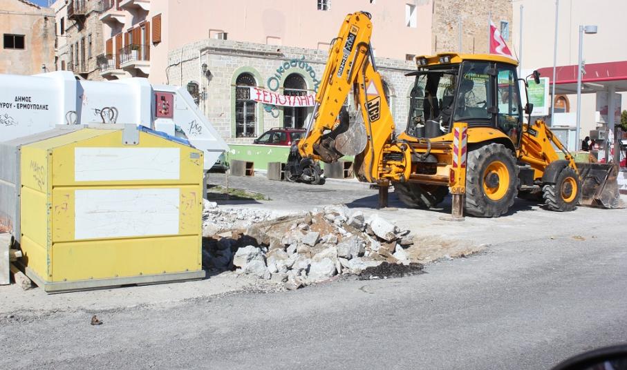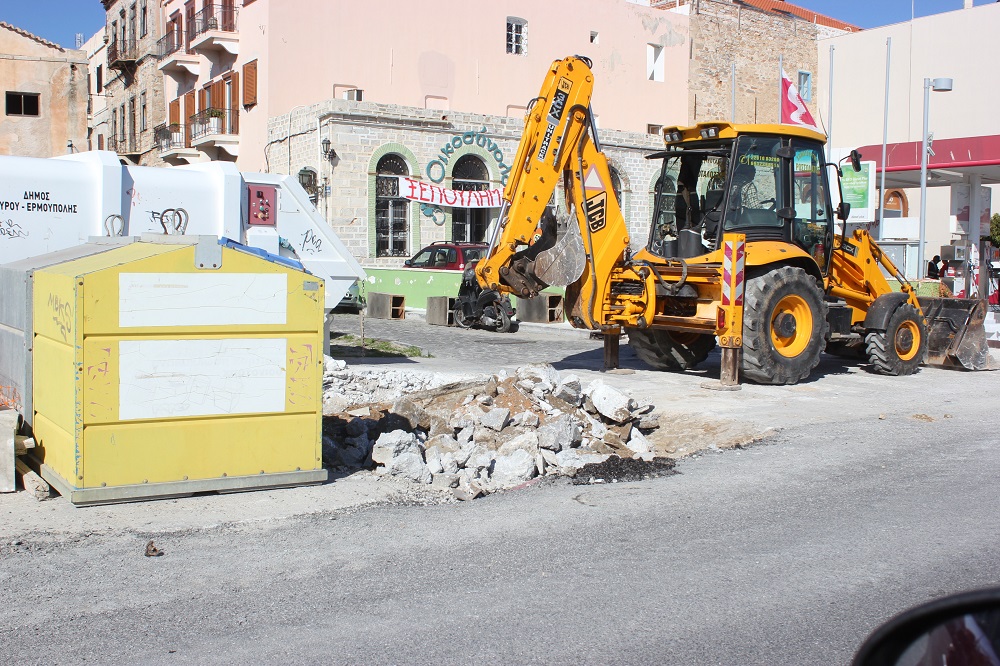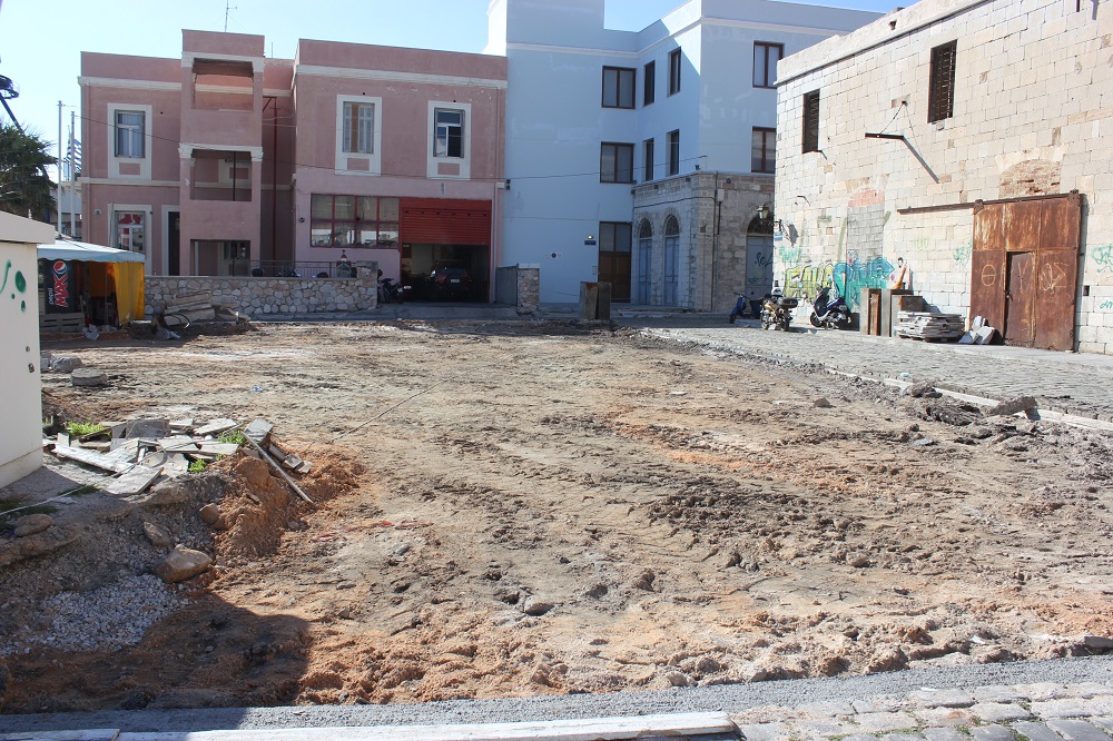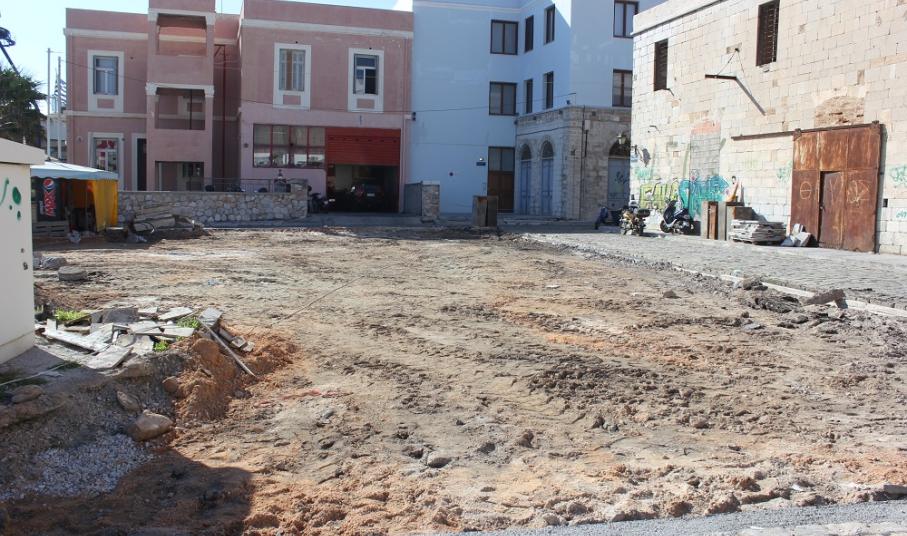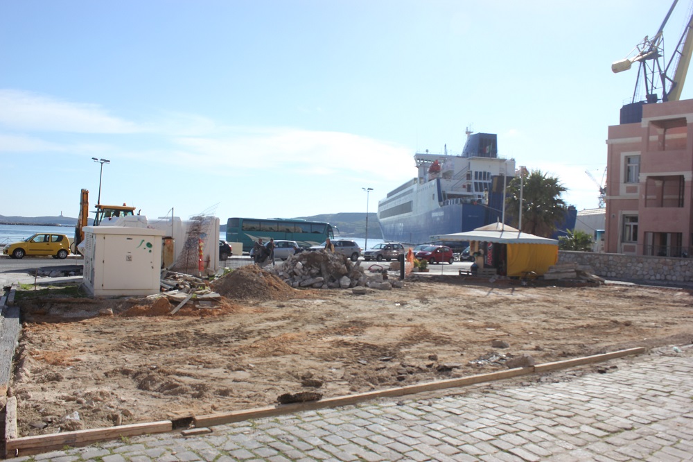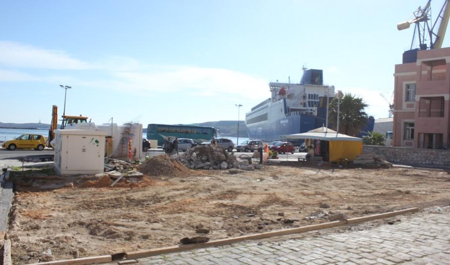 Σε εξέλιξη βρίσκονται τις τελευταίες ημέρες οι εργασίες διαμόρφωσης του χώρου που θα αποτελέσει την αφετηρία για τα λεωφορεία στην Ερμούπολη στο εξής, με τους εργάτες να πραγματοποιούν καθημερινά το προγραμματισμένο έργο τους.