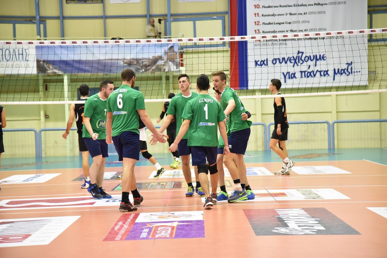 Η ομάδα του Νεωρίου δεν τα κατάφερε απέναντι στον Α.Ο. Αθλοπαιδιών Κω, αφού ηττήθηκε με 0-3 σετ στο ματς που πραγματοποιήθηκε στη Β' κλειστή αίθουσα του Αθλητικού Κέντρου. Το ματς μεταξύ των δύο ομάδων ήταν στο πλαίσιο των προκριματικών αγώνων για τη Β' φάση της Ζ' Περιφέρεια του Πανελληνίου πρωταθλήματος.