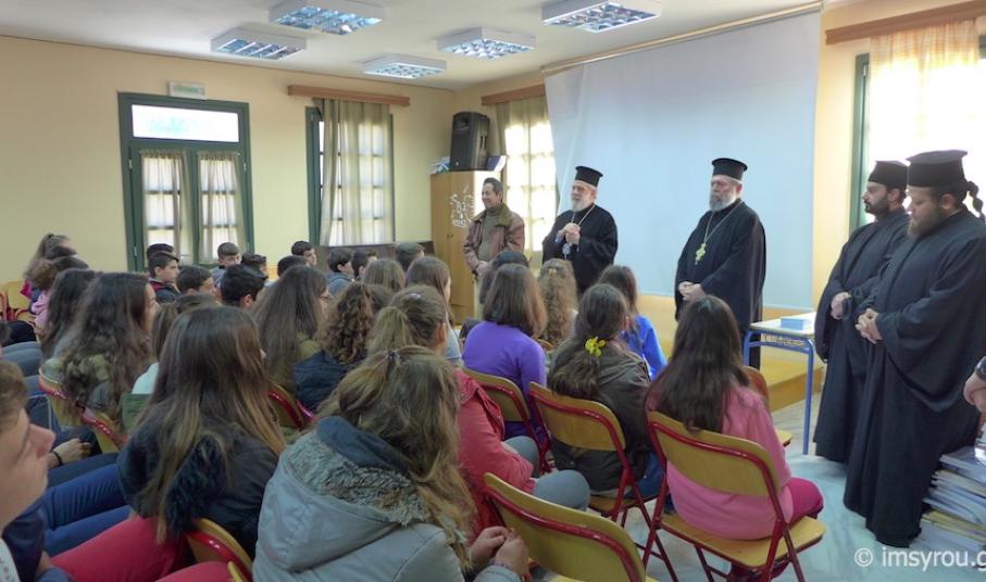 Το πρωί της επομένης, ο Σεβασμιώτατος κ. Δωρόθεος Β΄ επισκέφθηκε το Γυμνάσιο και το Λύκειο Κέας, στους μαθητές των οποίων μίλησε, απευθύνοντάς τους πατρικές ευχές και συμβουλές, ενώ διένειμε σε όλα τα παιδιά μικρό έντυπο, που έχει τυπώσει η Ιερά Μητρόπολη με αναφορά στην Ελληνική Σημαία. Ταυτόχρονα, ευχαρίστησε τους Εκπαιδευτικούς για την αποδοχή του αιτήματός του να επισκεφθεί το Σχολείο και τους συνεχάρη για το έργο τους, ενώ οι μαθητές του Λυκείου τον ευχαρίστησαν για τη συνδρομή της Ιεράς Μητροπόλεως στην εκδρομή τους.