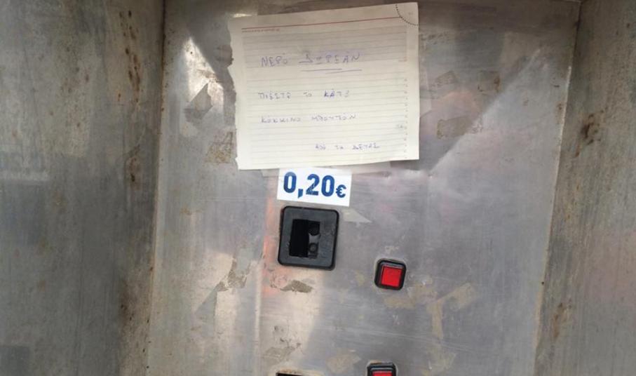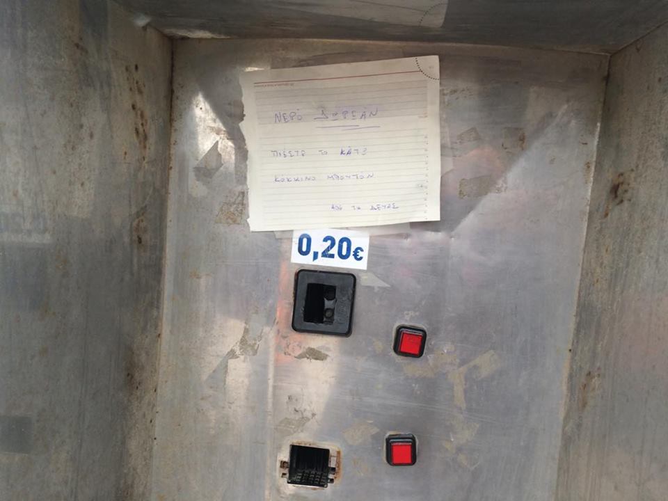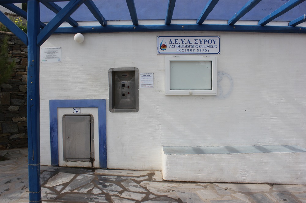Αν και δεν έχει υπάρξει σχετική – πρόσφατη - ενημέρωση προς τους δημότες ή κάποια ανακοίνωση εκ μέρους της ΔΕΥΑ Σύρου για τη διαπίστωση προβλήματος στη λειτουργία του εν λόγω μηχανήματος παροχής πόσιμου νερού, ωστόσο, ένα μόνον χαρτί το οποίο μέχρι προχθές βρισκόταν κολλημένο πλησίον του κερματοδέκτη, ενημέρωνε τους δημότες ότι μπορούν να λαμβάνουν νερό – και μάλιστα δωρεάν -, πατώντας παρατεταμένα το σχετικό κουμπί.