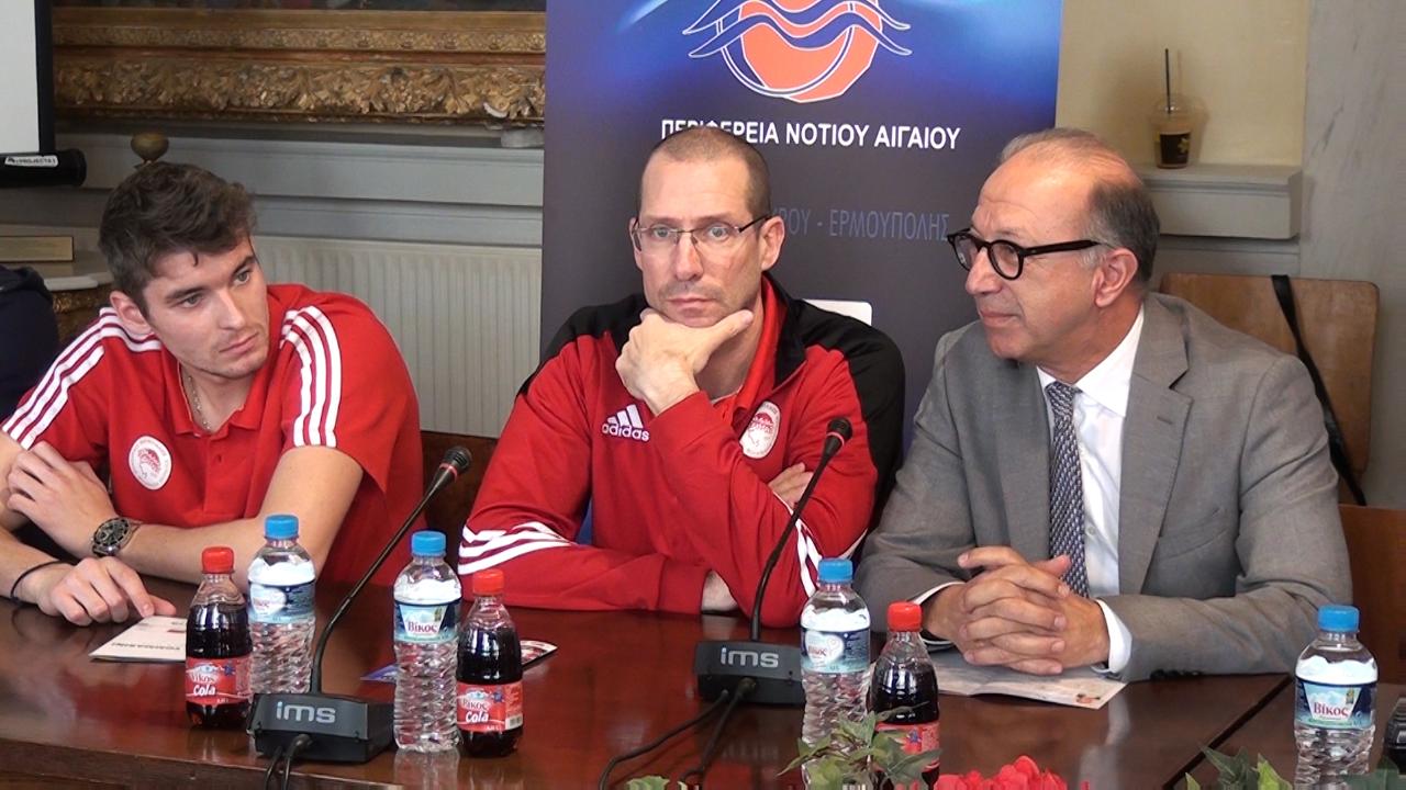 O Ολυμπιακός εκπροσωπήθηκε από τον πασαδόρο του Ντίμα Φιλίποφ και τον Ρομπέρτο Πιάτσα. O Ιταλός προπονητής του Ολυμπιακού εξέφρασε τη συμπάθεια του προς τον αντιπεριφερειάρχη Νοτίου Αιγαίου Γιώργο Λεονταρίτη ο οποίος ως γνωρίζει άριστα την ιταλική γλώσσα και έκανε και τη μετάφραση των δηλώσεων του.