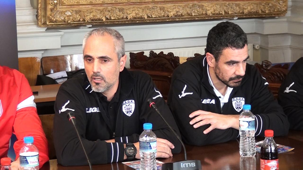 Ο προπονητής του Γιάννης Καλμαζίδης και ο αρχηγός του Βασίλης Κουρνέτας εκπροσώπησαν τον ΠΑΟΚ στη συνέντευξη Τύπου. Ο δικέφαλος συμμετέχει για δεύτερη φορά σε final four league cup, μετά το 2013 στο Βραχάτι, ενώ ο Κουρνέτας ως πασαδόρος του Φοίνικα κατέκτησε τον τίτλο στο 1ο league cup που είχε γίνει τη σεζόν 2011-12.