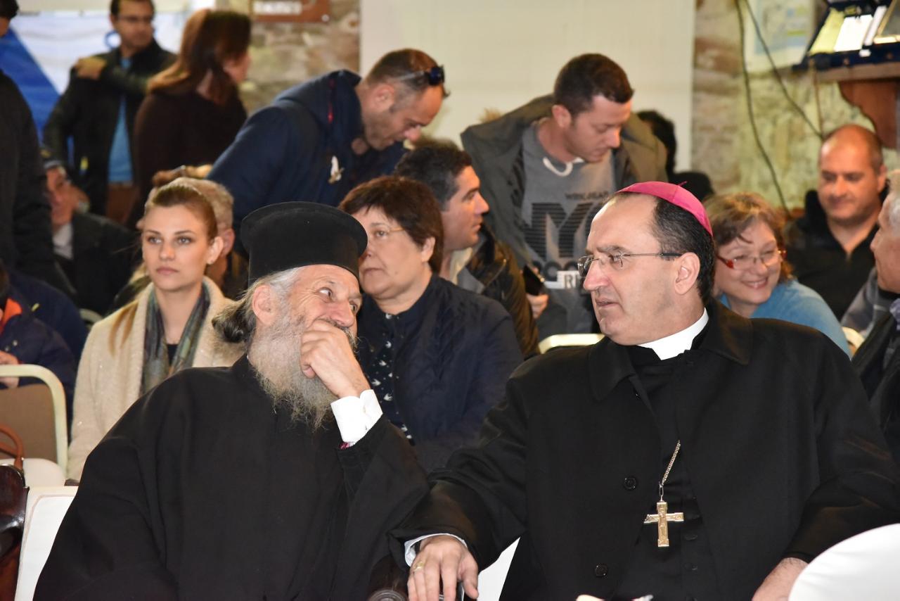 Το "παρών" στην εκδήλωση κοπής της πρωτοχρονιάτικης πίτας έδωσαν τόσο ο σεβασμιότατος Μητροπολίτης Σύρου Δωρόθεος Β', όσο και ο επίσκοπός της καθολικής εκκλησίας πατέρας Πέτρος Στεφάνου. Επίσης στην εκδήλωση έδωσαν τοπικοί φορείς του τόπου, οι δύο αντιπεριφερειάρχες Κυκλάδων, Λεονταρίτης και Μαργαρίτης, αλλά και ο Λιμενάρχης Σύρου και ο διοικητής της σχολής του εμπορικού ναυτικού.