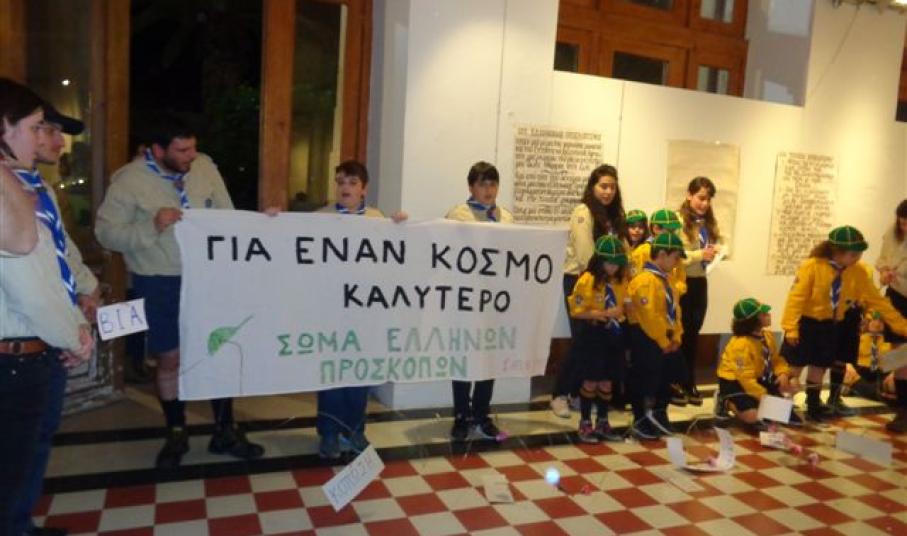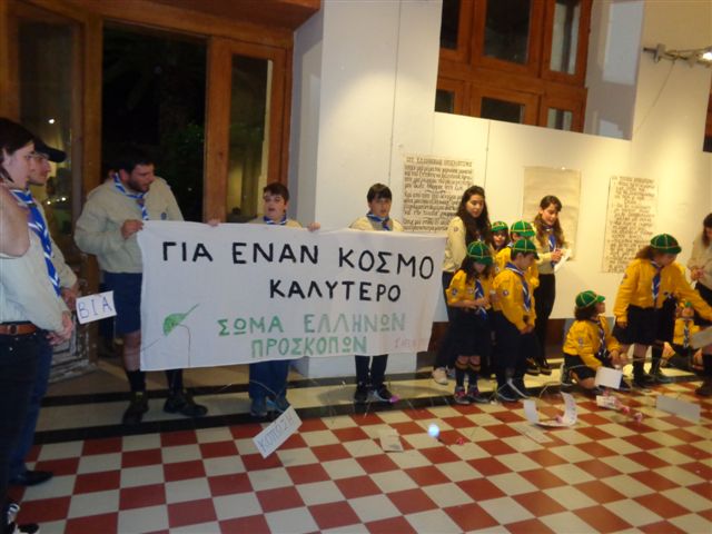 Πέραν των όμορφων προσκοπικών δράσεων που αναπτύχθηκαν εντός της αίθουσας Τέχνης, ο αρχηγός της Περιφερειακής Εφορείας Κυκλάδων του Σώματος Ελλήνων Προσκόπων (ΣΕΠ), Σωτήρης Φραγκίδης, μίλησε αναφορικά με τη βασική αξία της δράσης των Προσκόπων, η οποία εστιάζεται στο πώς θα γίνει ο κόσμος καλύτερος. Σύμφωνα με όσα, επεσήμανε για τη σημερινή εικόνα παγκοσμίως, “στον κόσμο μας οι πόλεμοι δεν εξαφανίστηκαν, η φτώχεια υπάρχει και ίσως αυξάνει, οι άστεγοι είναι δίπλα μας, οι θάνατοι από έλλειψη νερού και φαγητού μαστίζουν τις χώρες του Τρίτου Κόσμου” ενώ όπως πρόσθεσε, “ο πλανήτης σήμερα κινδυνεύει περισσότερο, οι ανθρώπινες αξίες έχουν μόνιμο αντίπαλο τη διαφθορά”. Απάντηση σε όλα αυτά βάσει των όσων σημείωσε παρακάτω, μπορεί να αποτελέσει η στάση του Προσκοπικού κινήματος και των ομάδων σε όλες τις χώρες. “Κι εσύ, ο Πρόσκοπος με ένα μαντήλι στο λαιμό και με λέξεις όπως, Υπόσχομαι, Τιμή, Καθήκον, Βοηθώ, Άνθρωπος, τι μπορείς να κάνεις; Τι μπορεί να αλλάξει κανείς με το παιχνίδι, την περιπέτεια, την εκδρομή, ή ακόμη και με την καλή πράξη των Χριστουγέννων;” σχολίασε απευθυνόμενος σε όλα τα παρευρισκόμενα μέλη, καλώντας τους να σκεφθούν πως, σε αυτά τα ερωτήματα, “Δεν μπορείς να απαντήσεις εύκολα, αλλά σκέψου για λίγο το μικρόκοσμο της καθημερινότητάς σου. Σκέψου και το Νόμο μας: Αλήθεια, δικαιοσύνη, εμπιστοσύνη, ευγένεια, σεβασμός, φιλία, αγάπη, οικονομία, αποφασιστικότητα, εργατικότητα, προσπάθεια, αισιοδοξία”.