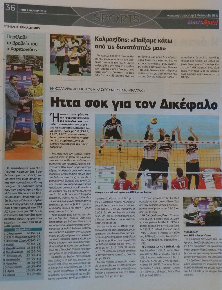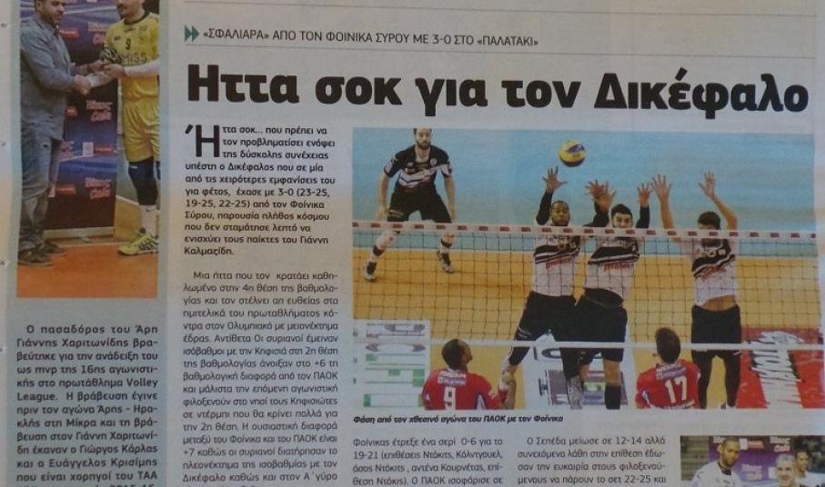 Ο Φοίνικας αποδεδειγμένα είναι η ζωντανή διαφήμιση της Σύρου, αφού είναι πολλές και συχνές οι αναφορές του νησιού και την ομάδας τόσο στην Ελλάδα όσο και στη Ευρώπη. Η νίκη της ομάδας της Σύρου επί του ΠΑΟΚ μόνο απαρατήρητη δεν πέρασε από τις καθημερινές αθλητικές εφημερίδες της συμπρωτεύουσας, αφού μιλούν με εγκωμιαστικό τρόπο στους Συριανούς και για την προσπάθεια που κατέβαλαν στο συγκεκριμένο παιχνίδι. Ο Φοίνικας πρέπει να στηριχθεί με όλους τους τρόπους ώστε να συνεχίσει τις... υψηλές του πτήσεις στο πρωτάθλημα της Volley league και η Σύρος θα κερδίζει μέσα από τους αγώνες της ομάδας. Άλλωστε σύμφωνα με πληροφορίες το final four του League Cup που πραγματοποιήθηκε στη Σύρο, το παρακολούθησαν περισσότεροι από ένα εκατομμύριο τηλεθεατές και η πρωτεύουσα των Κυκλάδων μπήκε μέσα στα σπίτια όλων των Ελλήνων.
