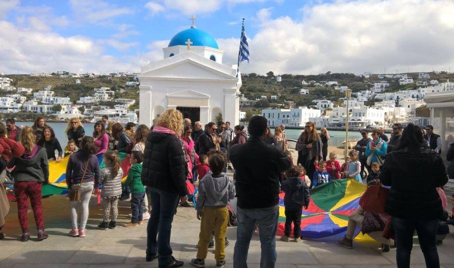 Τέλος, «Ρόδες, γέλια και χαρά, χρώματα και παιχνίδια με συναισθήματα πολλά» κατέκλυσαν χθες τη Χώρα Μυκόνου. Ποδήλατα και πατίνια στη σειρά με αφετηρία το Ξενοδοχείο Λητώ, ξεκίνησαν στις 11:00 με τερματισμό το Δημαρχείο. Εκεί, μεγάλα αερόστατα και πίνακες ζωγραφικής περίμεναν τους μικρούς ποδηλάτες για να εκφράσουν και να αποτυπώσουν συναισθήματα με την καθοδήγηση παιδαγωγών των παιδικών σταθμών του Δήμου Μυκόνου. Κατά τη διάρκεια της εκδήλωσης πραγματοποιήθηκαν ψυχοκινητικές δραστηριότητες στο γιαλό, μπροστά στο Δημαρχείο και τον Άγιο Νικολάκι.