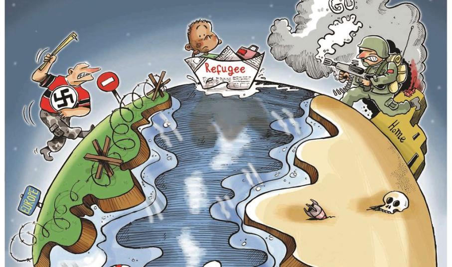 Μία «γροθιά» στον πυρήνα της Ευρώπης, δίνουν οι Έλληνες γελοιογράφοι, μέσω της έκθεσης, με θέμα το προσφυγικό ζήτημα, «Το Μετέωρο Βήμα», η οποία συνδιοργανώνεται από την Περιφέρεια Νοτίου Αιγαίου.