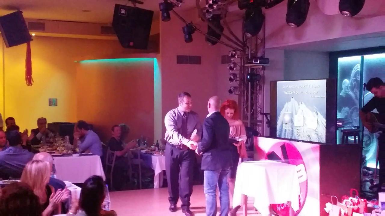 Η εκδήλωση ξεκίνησε με την προβολή ενός σύντομου βίντεο από την 1η Αποστολή του Ο.Φ.Τ.Σ.Σύρου το 2015 στη Δονούσα και είχαμε την ευκαιρία να τιμήσουμε και να ευχαριστήσουμε κάποιους ανθρώπους που συνέβαλαν σε αυτή. Eκπρόσωποι από την Περιφέρεια Νοτίου Αιγαίου που ήταν συνδιοργανωτής, από τη Σεκαβίν που ήταν μεγάλος χορηγός, η κυρία Γεωργία Ματσούκα από την εταιρεία Εν.το.πο Σύρω που φρόντισε για το θεατρικό της αποστολής και εκπρόσωπος της κυρίας Νάνσυ Χάλαρη που είχε κάνει δωρεά βιβλίων, ήταν εκεί και τιμήθηκαν με ένα συμβολικό βραβείο για τη μεγάλη προσφορά τους. Επίσης ο Ο.Φ.Τ.Σ.Σ. φρόντισε να ευχαριστήσει και να τιμήσει τον δικηγόρο κύριο Μανθόπουλο Μάνθο για την ανιδιοτελή προσφορά των υπηρεσιών του στον όμιλο από την αρχή της ίδρυσής του. Στη συνέχεια, έκανε έναν χαιρετισμό ο δήμαρχος Σύρου-Ερμούπολης κύριος Μαραγκός Γιώργος και ξεκίνησε η κλήρωση της λαχειοφόρου αγοράς.