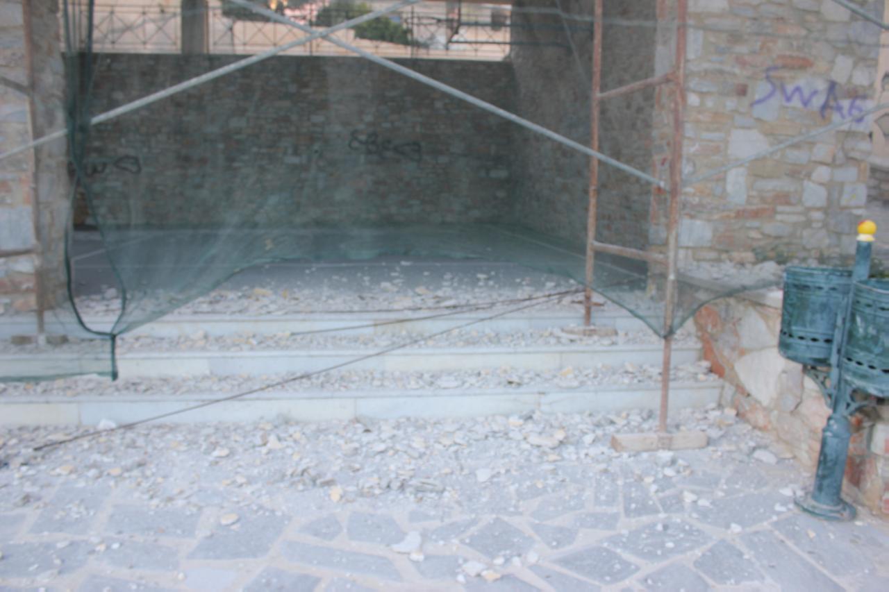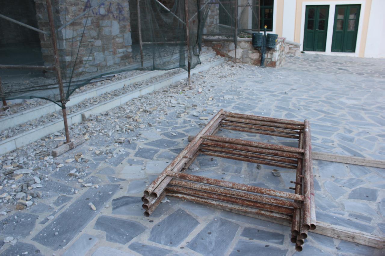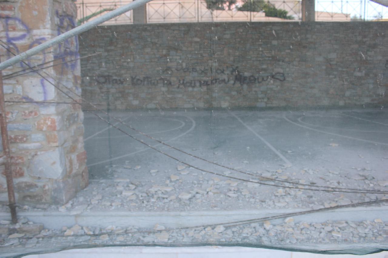 Με βασική προτεραιότητα την αποκατάσταση των σοβάδων, το συνεργείο του δήμου καταβάλλει κάθε δυνατή προσπάθεια, προκειμένου να επαναφέρει το κτήριο στην αρχική κατάστασή του, με στόχο την ασφαλή άθληση των μαθητών.