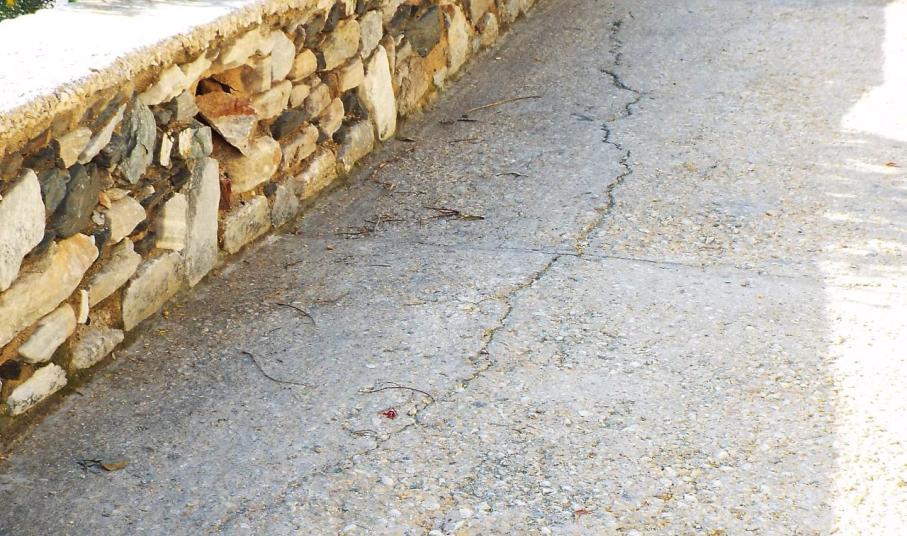 Δεδομένης της δημιουργίας κενού στο υπόβαθρο, σοβαρές φθορές και καθίζηση παρουσιάζει ο σκυροδετημένος δρομίσκος, που βρίσκεται ακριβώς πάνω από το τοιχίο και εξυπηρετεί τις ιδιωτικές κατοικίες, που βρίσκονται επ’ αυτού.