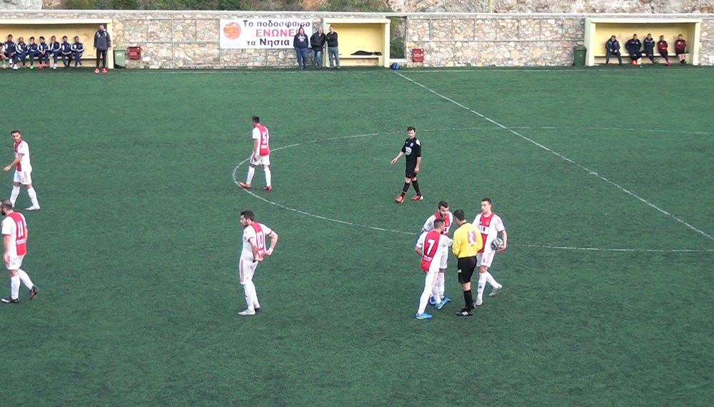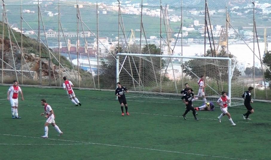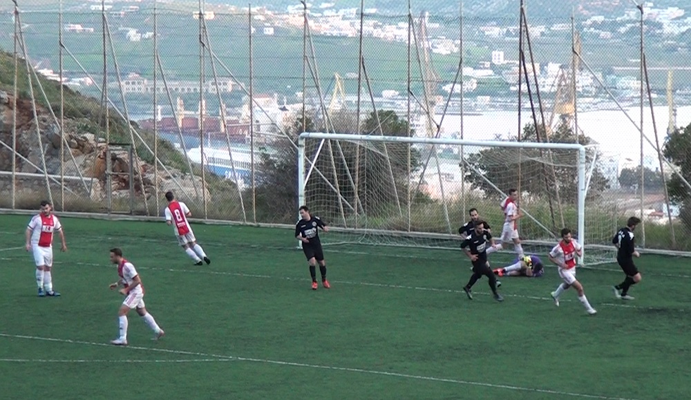 13’ διπλή ευκαιρία να ανοίξει το σκορ είχε ο Αίαντας Σύρου με τους Καμπάνη και Γιάννη Ρούσσο.