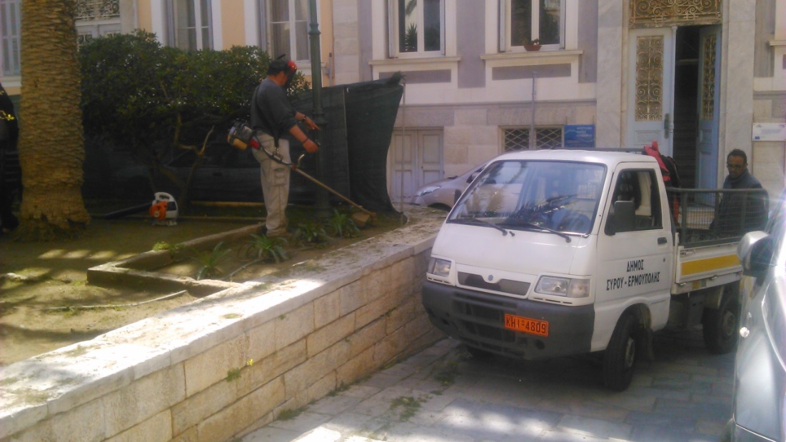 Με εντατικούς ρυθμούς προχωρούν οι εργασίες περιποίησης και καθαρισμού κεντρικών σημείων της Ερμούπολης και των ευρύτερων περιοχών αυτής, με την αρμόδια υπηρεσία και τον αντιδήμαρχο, Μάριο Βουτσίνο να δίνουν έμφαση σε πλατείες και μνημεία όπου θα πραγματοποιηθεί η κατάθεση στεφάνων ενόψει της εθνικής επετείου της 25ης Μαρτίου.