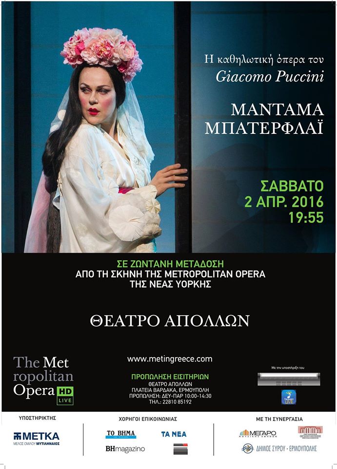 Μετά τις όπερες «Τουραντότ» και «Μανόν Λεσκό», η Metropolitan Opera παρουσιάζει ζωντανά από τη Νέα Υόρκη τη «Μαντάμα Μπατερφλαϊ».