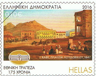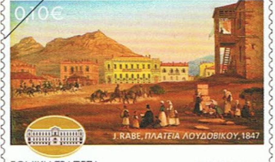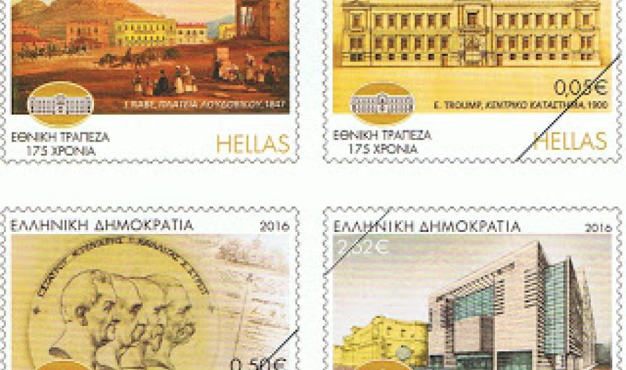 Η Εθνική Τράπεζα που αναπτύχθηκε παράλληλα με το νεοσύστατο ελληνικό κράτος, δίνει διαχρονικά μεγάλη βαρύτητα στο χαρακτήρα των οικημάτων που χρησιμοποιεί για τις λειτουργικές ανάγκες της. Για τον λόγο αυτό τρία γραμματόσημα της Αναμνηστικής Σειράς ιστορούν την εξέλιξη της περιοχής που επέλεξε η Εθνική Τράπεζα για να εγκαταστήσει την έδρα της, ενώ το τέταρτο παρουσιάζει τους τέσσερις πρώτους διοικητές της.
