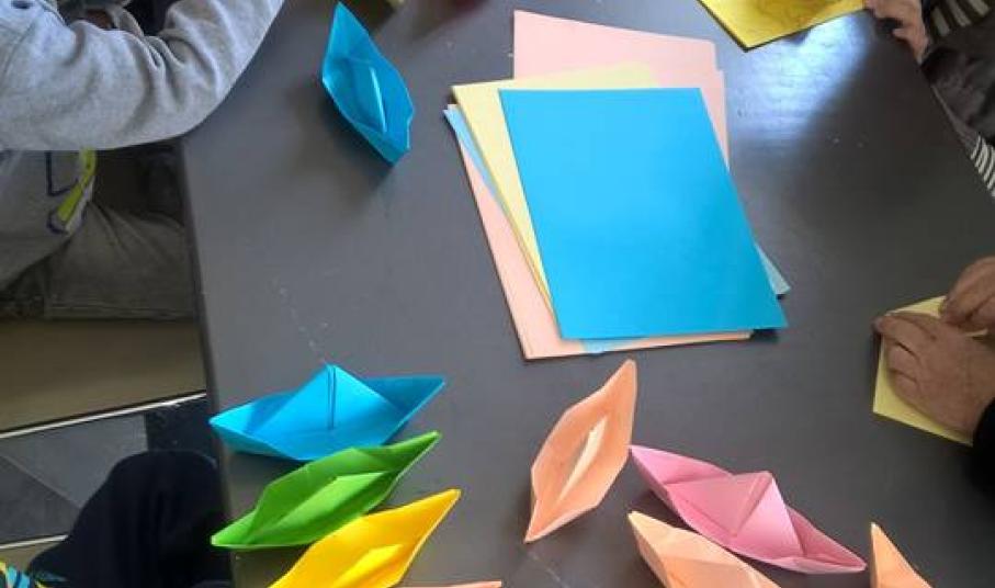 Η κ. Μπατή καλεσμένη ως ειδικός, με εχέγγυα από αντίστοιχη δράση που είχε ξεκινήσει σε τμήμα του Παιδικού Σταθμού Μυκόνου και εμπνευσμένα εξελίχθηκε τον περασμένο Μάρτιο από την Πρόεδρο του Δ.Σ. Ανδριανή Κουφού και τον Αντιπρόεδρο Βασίλη Πελέκη, τείνοντας να γίνει θεσμός, έφτιαξε με τους παρευρισκόμενους με υπομονή και τη γνώριμη γλυκύτητα ταξιδιάρικα, "συναισθηματικά φορτωμένα" χάρτινα καραβάκια , όπως παλιά, που τα Μυκονιατάκια τα ταξίδευαν στην Αλευκάντρα.