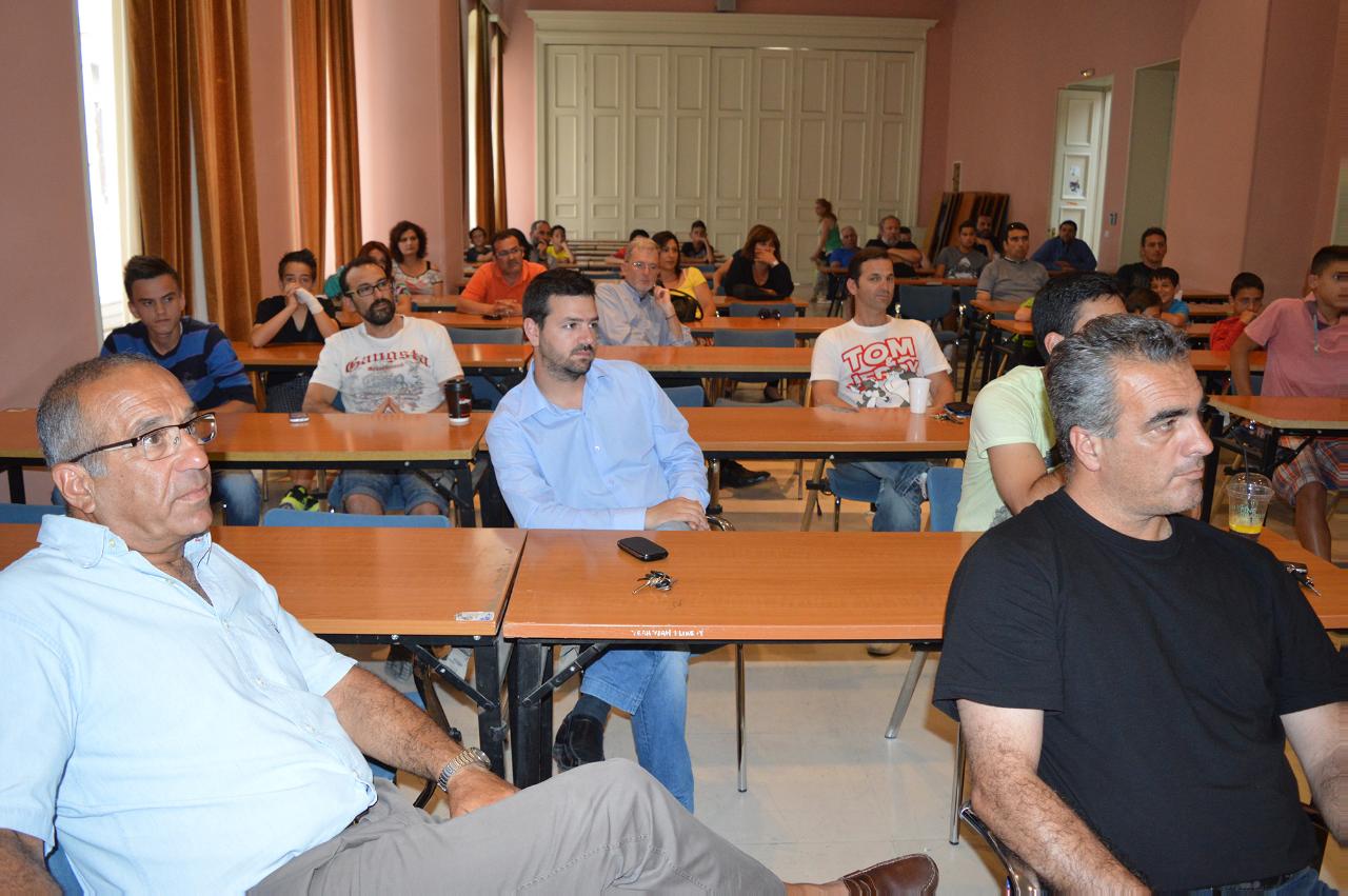 Αρχικά ο Δημήτρης Κάμπαξης μίλησε για τον χρόνο και τον σκοπό της δημιουργίας του συνδέσμου των προπονητών στις Κυκλάδες.