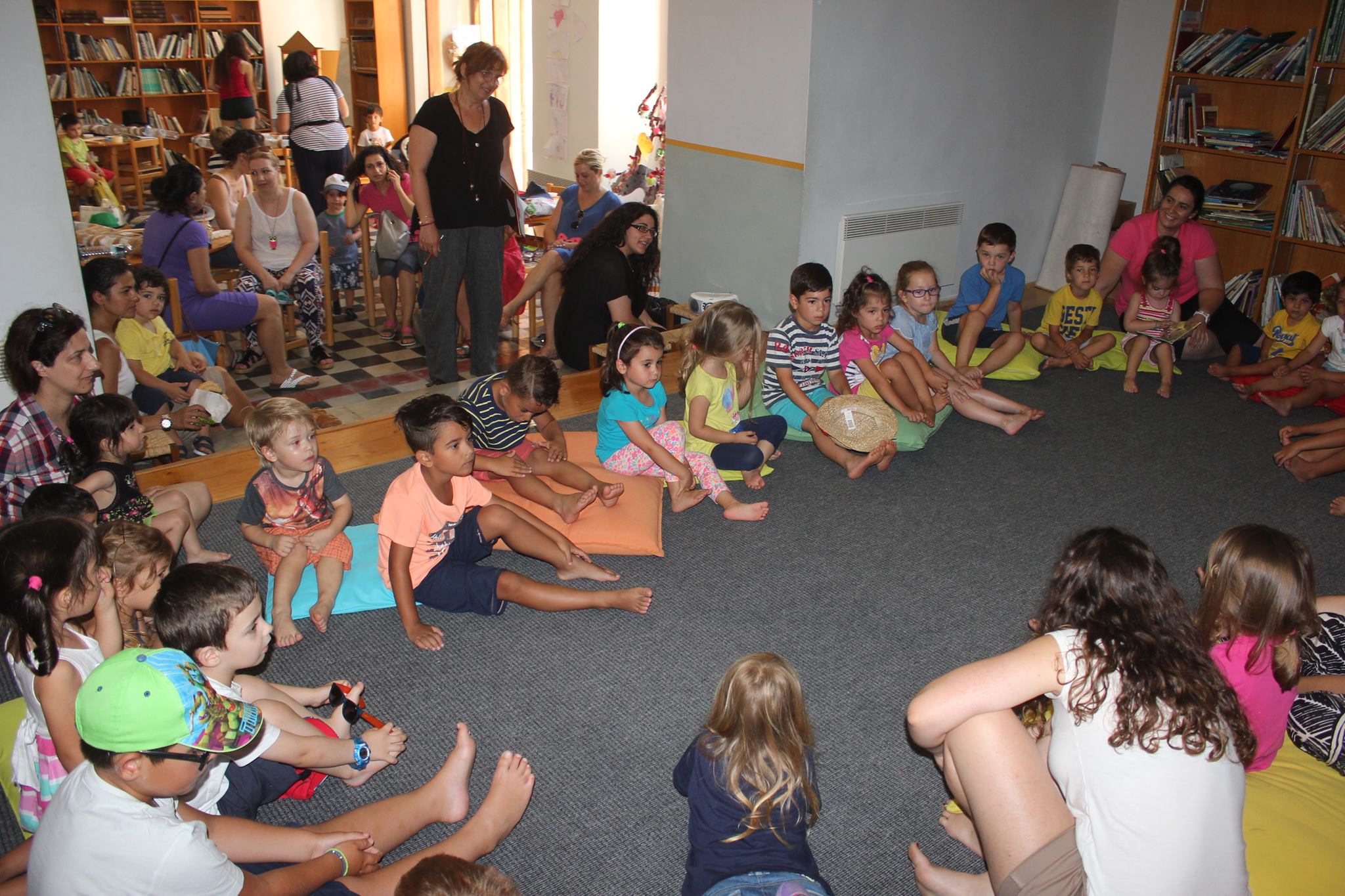 Η υπεύθυνη κ. Σκαβάκη και οι εθελόντριες της Βιβλιοθήκης Ευγενία Σαγκινέτου, Ελπίδα Ρηγούτσου, Ματίνα Αληφραγκή, Πόπη Παγώνη και Άννα Πλυτά υποδέχονται κάθε Παρασκευή τους μικρούς φίλους τους για να ολοκληρωθεί όμορφα και δημιουργικά η εβδομάδα που θα αφήσουν πίσω τους.