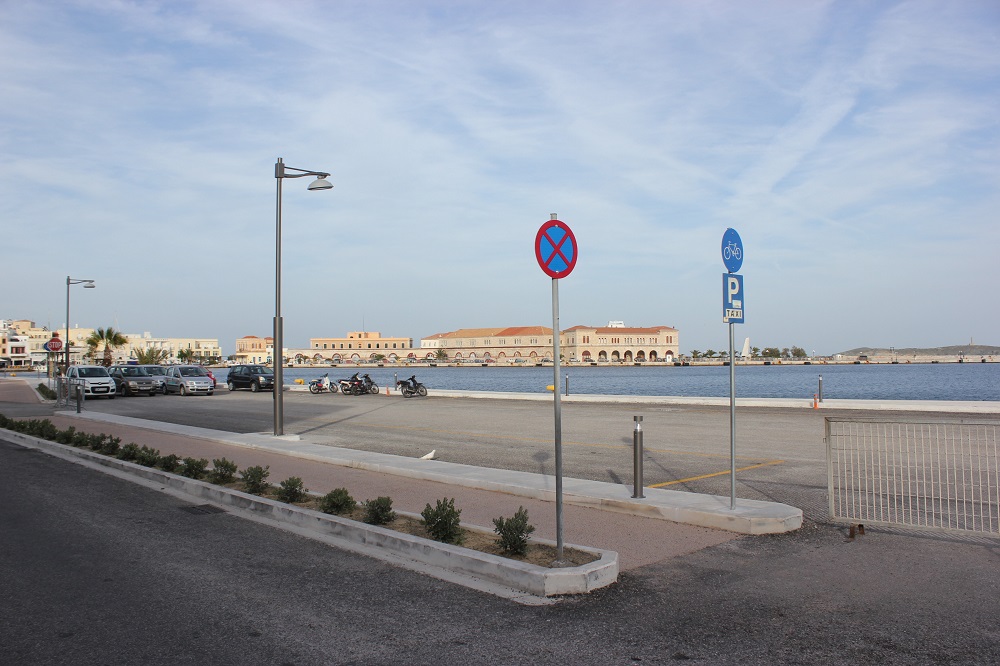 Αναφορικά με τη θέση “Νησάκι”, κρίνεται αναγκαίο να υπενθυμιστεί δε, πως, στην ίδια νησίδα που θα σταθμεύουν ταξί, το εναπομείναν τμήμα θα προβλεφθεί για θέσεις στάθμευσης δικύκλων. Κατά συνέπεια, μοιραία, θα καταργηθούν κάποιες επιπλέον θέσεις στάθμευσης για οχήματα, μπροστά από το κτίριο του Λιμενικού Ταμείου Σύρου.