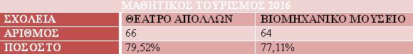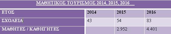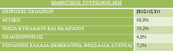 Εάν αυτές οι αυξήσεις μεταφραστούν σε ποσοστά, παρατηρείται ότι ο μαθητικός τουρισμός την περίοδο Μαρτίου - Μαΐου 2016 αυξήθηκε σε σχέση με το 2015 κατά 53,7% και το πλέον αισιόδοξο μήνυμα είναι ότι αυξήθηκε σε σχέση με το 2014 κατά 93%.