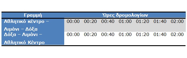 Ο Δήμος Σύρου - Ερμούπολης ενημερώνει ότι, εν όψει της Λιτανείας των Επιταφίων το βράδυ της Μεγάλης Παρασκευής και λόγω της αναμενόμενης μεγάλης προσέλευσης πιστών, για την καλύτερη εξυπηρέτηση των επισκεπτών και των δημοτών μας, τα δρομολόγια της αστικής συγκοινωνίας των Mini Bus για τη Μεγάλη Παρασκευή 29 Απριλίου 2016 θα εκτελούνται κανονικά έως τις 20:00 από Αθλητικό κέντρο – Δόξα, έως τις 19:00 για Βροντάδο και έως τις 18:30 για Άνω Σύρο. Από τις 20:00 – 00:00 θα γίνει παύση των δρομολογίων, λόγω της διέλευσης των Επιταφίων, και επανέναρξη από τις 00:00 – 02:00. Συγκεκριμένα τα δρομολόγια της αστικής συγκοινωνίας των Mini Bus διαμορφώνονται ως εξής για τις ώρες 00:00 – 02:00 ως φαίνεται στη σχετική φωτογραφία με τον πίνακα.