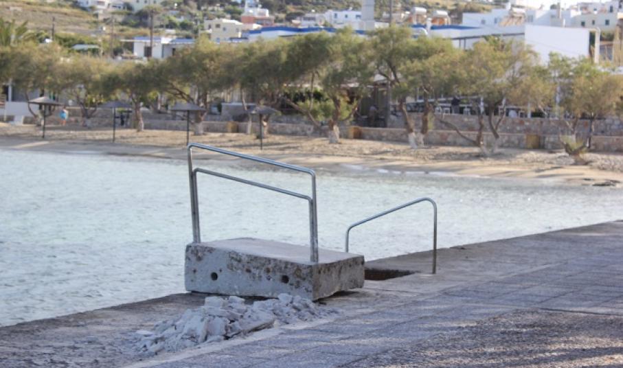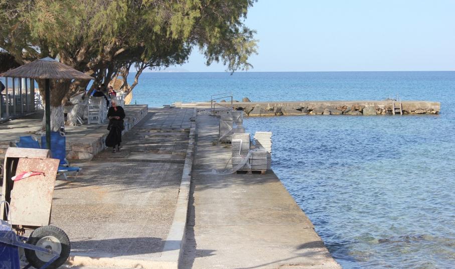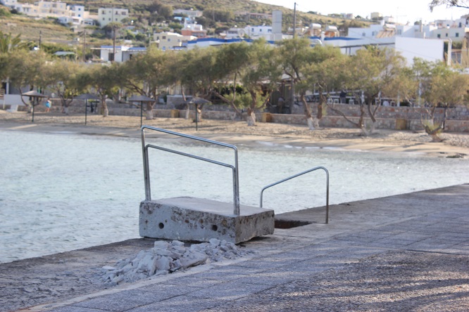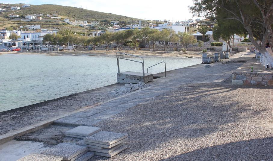 Ήδη έχουν αποκολληθεί μεγάλα τμήματα των πλακών που υφίσταντο μέχρι πρότινος προς την πλευρά της νέας επιχείρησης πλησίον της μικρής παιδικής χαράς, τμήμα το οποίο επιλέγουν λουόμενοι που δεν επιθυμούν να βρίσκονται στο αμμώδες κομμάτι της παραλίας.