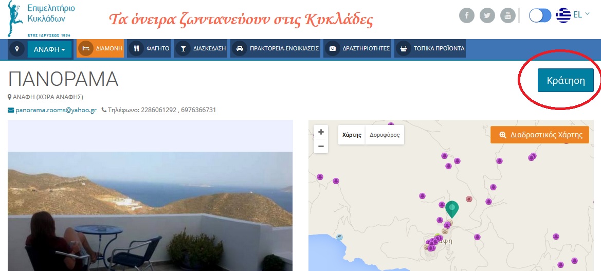 Πέραν της δυνατότητας προβολής των επιχειρήσεων (σήμερα 4.100) καθώς και 10.000 σημείων ειδικού ενδιαφέροντος των νησιών του νομού, το Επιμελητήριο Κυκλάδων προσφέρει στα καταλύματα - το πλεονέκτημα - να διαθέσουν με τη σειρά τους, τη δυνατότητα άμεσης ηλεκτρονικής κράτησης προς τους πελάτες τους, αν αδράξουν την ευκαιρία και αξιοποιήσουν την επιχειρηματική ευκαιρία σύμφωνα με τη σύγχρονη τεχνολογία.