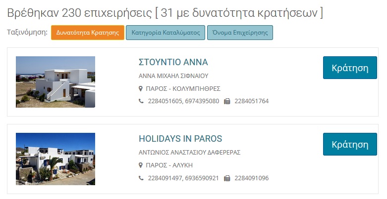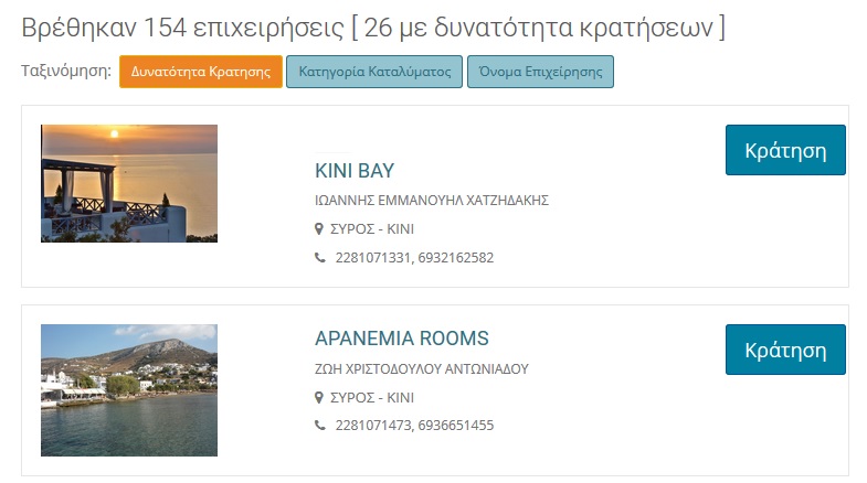 Δυνατότητα προβολής καταλυμάτων και στα κινητά τηλέφωνα