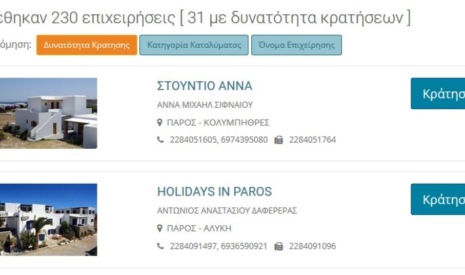Σύμφωνα με όσα ανέφερε στην εφημερίδα ο πρόεδρος, Γιάννης Ρούσσος σχετικά με τις νέες δυνατότητες του Επιμελητηρίου Κυκλάδων, η επιχειρηματική – τουριστική πύλη (e-kyklades.gr), κατά το έτος 2015 δέχτηκε περίπου 500.000 επισκέπτες με 2.653.000 προβολές ενώ τους πρώτους μήνες του 2016 αυτοί οι αριθμοί έχουν ήδη υπερδιπλασιαστεί, γεγονός που αναδεικνύει την απήχηση που έχει το site σε επίπεδο επισκεψιμότητας. Αξιοποιώντας η διοίκηση και τα στελέχη του αυτό το γεγονός, “ανοίγουν” από σήμερα την ανανεωμένη δυνατότητα on-line κράτησης για τα καταλύματα με έναν πιο απλοποιημένο, άμεσο και σύγχρονο τρόπο, με τη σχετική εφαρμογή δε, να προβάλλεται και στα κινητά τηλέφωνα.
