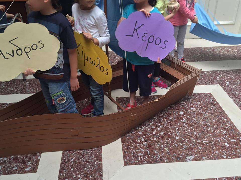 Η υπεύθυνη των προγραμμάτων κ. Μαρία Κάπαρη μίλησε στους μαθητές για τα ειδώλια και τη δημιουργία της πόλης μας. Στη συνέχεια, όλοι μεταφέρθηκαν στο αίθριο του Μουσείου, όπου είχαν την ευκαιρία να “ταξιδέψουν” με το “καραβάκι” από νησί σε νησί, διανύοντας το Αιγαίο Πέλαγος.