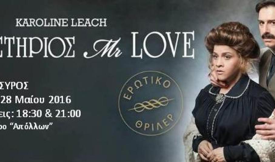 Στα δίχτυα του “Μυστήριου Mr. Love” θα πέσει το επόμενο Σάββατο το θεατρόφιλο κοινό της Σύρου, το οποίο υποδέχεται στο Θέατρο «Απόλλων» το ομώνυμο ερωτικό θρίλερ της Καρολάιν Λιτς με πρωταγωνιστές τον Αλέξανδρο Μπουρδούμη και τη Τζένη Διαγούπη.