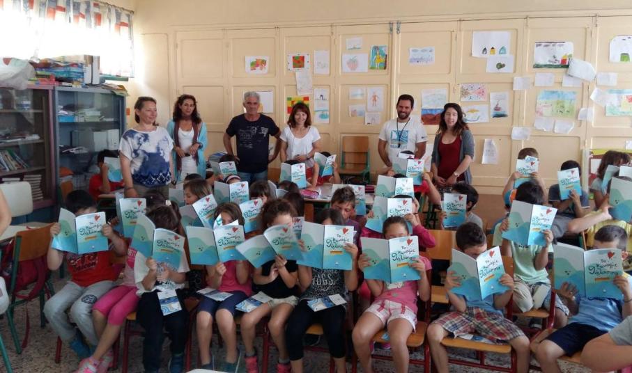 Οι υπεύθυνοι της Αναπτυξιακής Εταιρείας Κυκλάδων και η Ελένη Συλιβάνη, μία εκ των παραμυθάδων του Εργαστηρίου Δημιουργικής Γραφής επισκέφτηκαν χθες το πρωί το 5ο Δημοτικό Σχολείο Ερμούπολης και μοίρασαν στα παιδιά της Α’ και της Γ’ Τάξης από ένα βιβλίο.