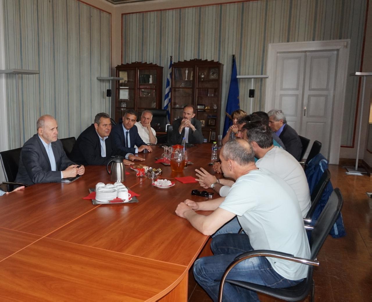 Ζήτημα στο οποίο δεν παρέλειψε να αναφερθεί ο κ. Καμμένος τόσο λιτά, κατά τη διάρκεια της εκδήλωσης, όσο όμως και στις δηλώσεις που παραχώρησε στους δημοσιογράφους στο αεροδρόμιο, αποτέλεσε το Νεώριο. Συγκεκριμένα, γνωστοποιώντας πρωτίστως, πως με τους εργαζομένους είχε συνάντηση, ενώ θα ακολουθήσει και μία νέα, την προσεχή εβδομάδα στην Αθήνα στο Υπ. Εθνικής Άμυνας, δήλωσε τα παρακάτω, “Όσον αφορά στην πώληση του Νεωρίου αντιλαμβάνεστε ότι είναι μεταξύ ιδιωτικών επιχειρήσεων και δεν μπορώ εγώ σαν εκπρόσωπος της Πολιτείας να κάνω δηλώσεις. Σαν πρόσωπο όμως, σας λέω ότι γνωρίζω τις διαδικασίες που έχουν ακολουθηθεί κι ελπίζω ότι θα είναι πολύ καλά τα νέα στο άμεσο μέλλον. Από την πλευρά τη δική μας όμως, οφείλουμε σαν κράτος να βοηθήσουμε να συνεχίσει να είναι εν λειτουργία το Νεώριο και να πληρωθούν τα χρήματα που οφείλονται στους εργαζόμενους. Συμφωνήσαμε με τους εργαζόμενους ότι μέσα στην επόμενη εβδομάδα με την επιστροφή του κ. Βίτσα που είναι και ο αρμόδιος Υπουργός θα γίνει μία πολύ μεγάλη σύσκεψη στο Υπουργείο Εθνικής Αμύνης με τη συμμετοχή του Υπ. Οικονομικών, του Υπ. Εργασίας, του Υπ. Εμπορικής Ναυτιλίας προκειμένου να δούμε τις δυνατότητες που έχει το Πολεμικό Ναυτικό, να δώσει κάποιες εργασίες που το οικονομικό όφελος θα πηγαίνει στους εργαζόμενους που πράγματι τραβάνε μία “οδύσσεια” εδώ και αρκετούς μήνες”.