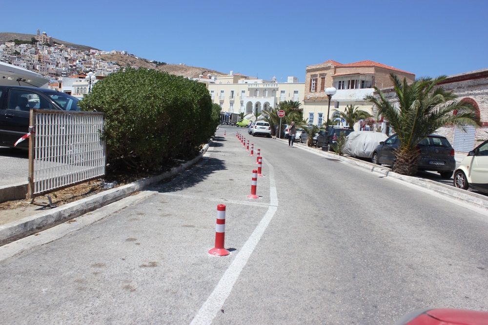 Πρόσφατη παρέμβαση αποτελεί η τοποθέτηση πλαστικών εύκαμπτων κολωνακίων περιμετρικά της αρχικής κεντρικής νησίδας στη θέση Νησάκι, χώρο, τον οποίο επιθυμεί να διαθέσει στο εξής, προς στάθμευση των δικύκλων. Σύμφωνα με όσα είναι γνωστά μέχρι σήμερα, σχετική γνωμοδότηση έχει λάβει η διοίκηση του Δημοτικού Λιμενικού Ταμείου Σύρου σε συνεδρίαση των μελών της, οπότε και πρώτη φορά είχε καταστεί γνωστή η πρόθεση κατάργησης θέσεων στάθμευσης οχημάτων, προκειμένου να εξυπηρετούνται οι οδηγοί δικύκλων κατά τη διάρκεια των καλοκαιρινών μηνών.