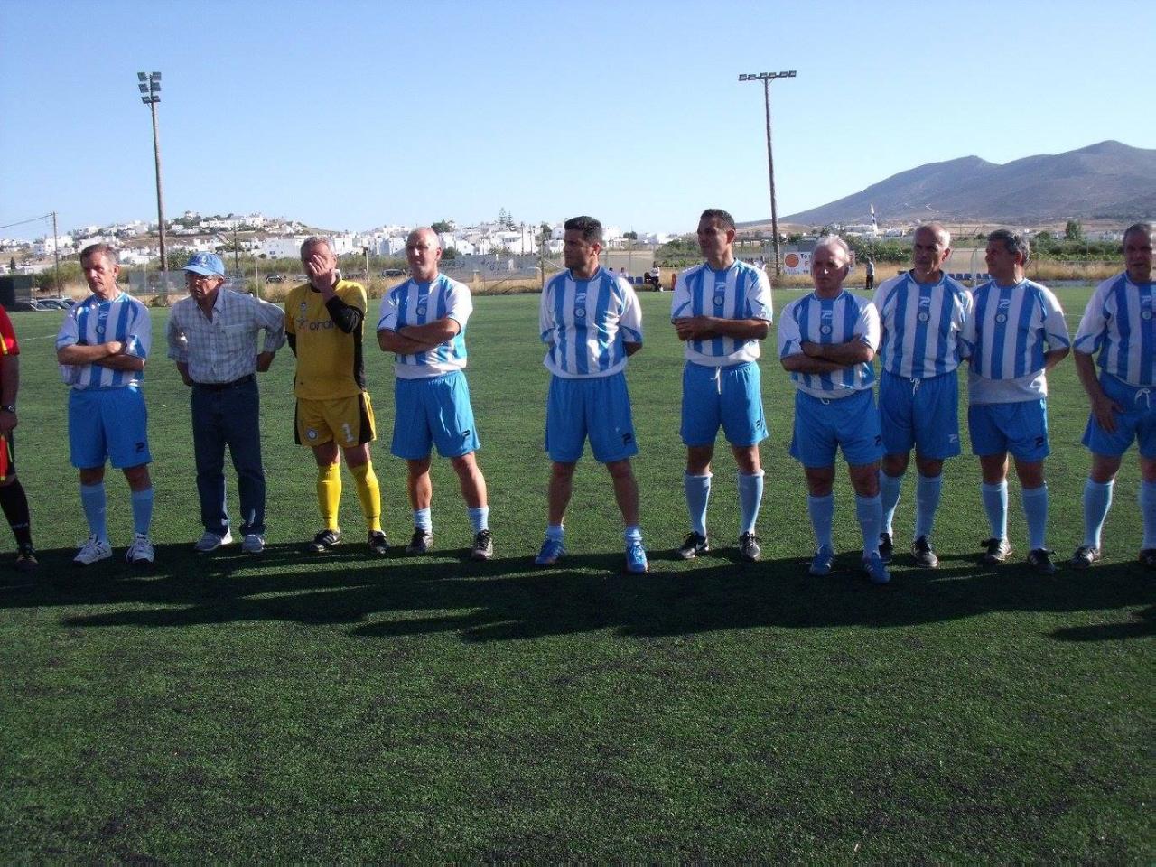 Στο δημοτικό γήπεδο του Αρχιλόχου συγκεντρώθηκε πολύς κόσμος για το ματς, τα έσοδα του οποίου θα διατεθούν στην Ελληνική ομάδα διάσωσης παράρτημα Κυκλάδων.