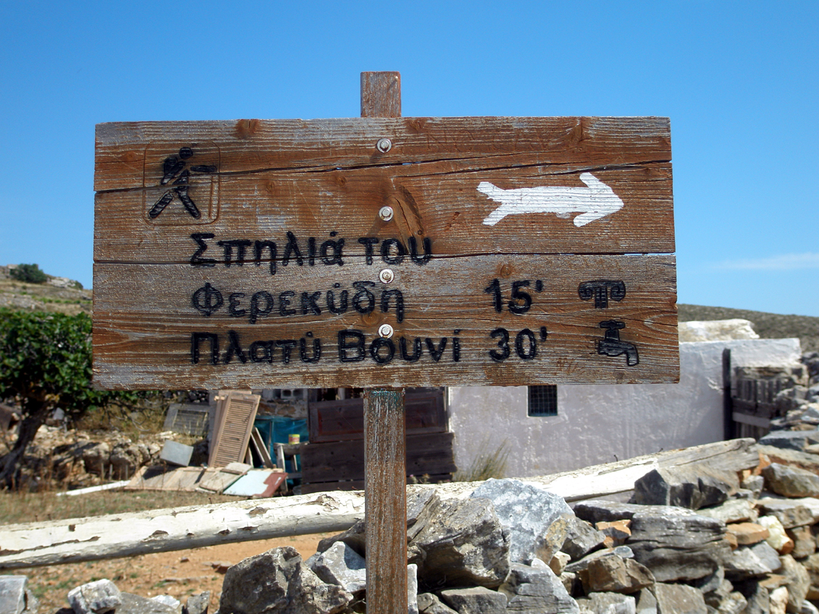 Το σπήλαιο δε, χρησιμοποιείται ως κατοικία και τουαλέτα από τις συμπαθείς κατά τα άλλα εξερευνήτριες κατσίκες, οι οποίες ασφαλώς και δεν είναι σε θέση να γνωρίζουν ότι το χρησιμοποιούσε ο Φερεκύδης, ο πρώτος δάσκαλος του Πυθαγόρα, για να στοχάζεται αγναντεύοντας τη Δήλο. Και τώρα θα ισχυριστεί κάποιος, ότι και εμείς, που υποτίθεται, διαθέτουμε τη σχετική κρίση και γνωρίζουμε τι ακριβώς είναι, συνεχίζουμε να το μεταχειριζόμαστε ως σκουπιδότοπο. Και θα έχει απόλυτο δίκιο.